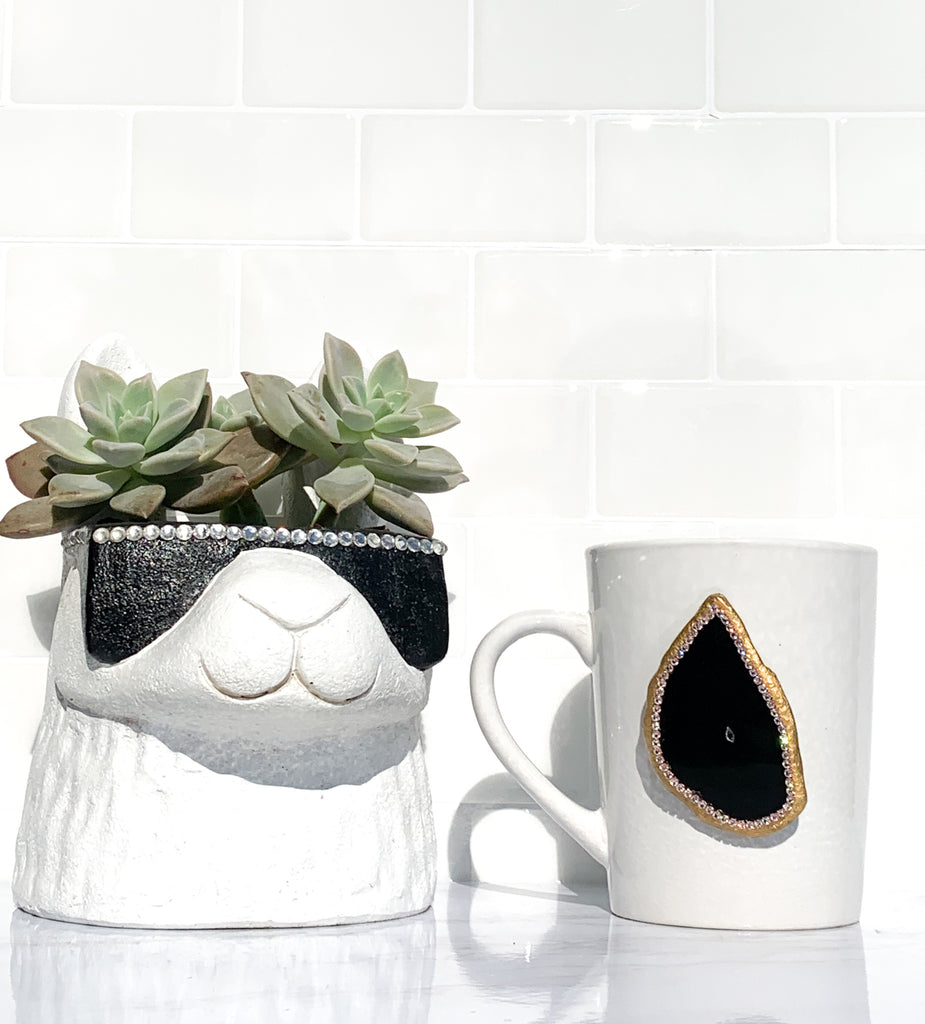 *♡* Please note that each item is handmade and colors may reflect slight differences than the ones pictured. Due to the delicate nature of the gemstones being natural stones, I am not responsible if you mishandle your cup/glass as the gemstones may break, crack or chip as well as the cup/glass itself if mishandled. I edge the 18kt gold edged stones by hand, PLEASE HAND WASH your glasses/cups/mugs with care.