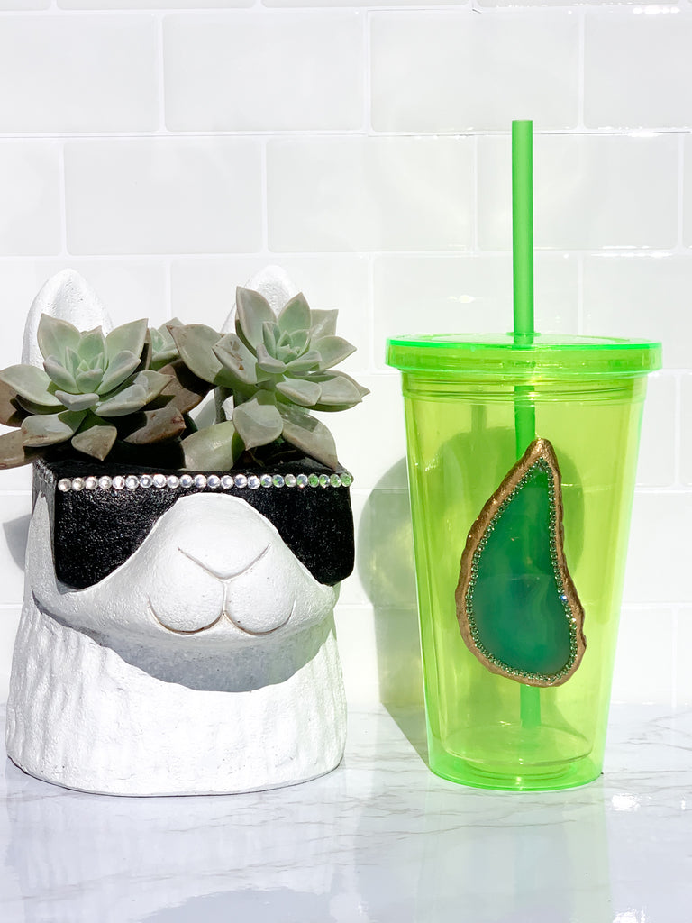 *♡* Go green with these stylish tumblers. The double-wall design prevents condensation from forming on the outside while your drinks stay cold. Each tumbler has a screw-on top and straw that make them great for a drink on the go. A must have for road trips, the beach, sporting events, picnics, and more!