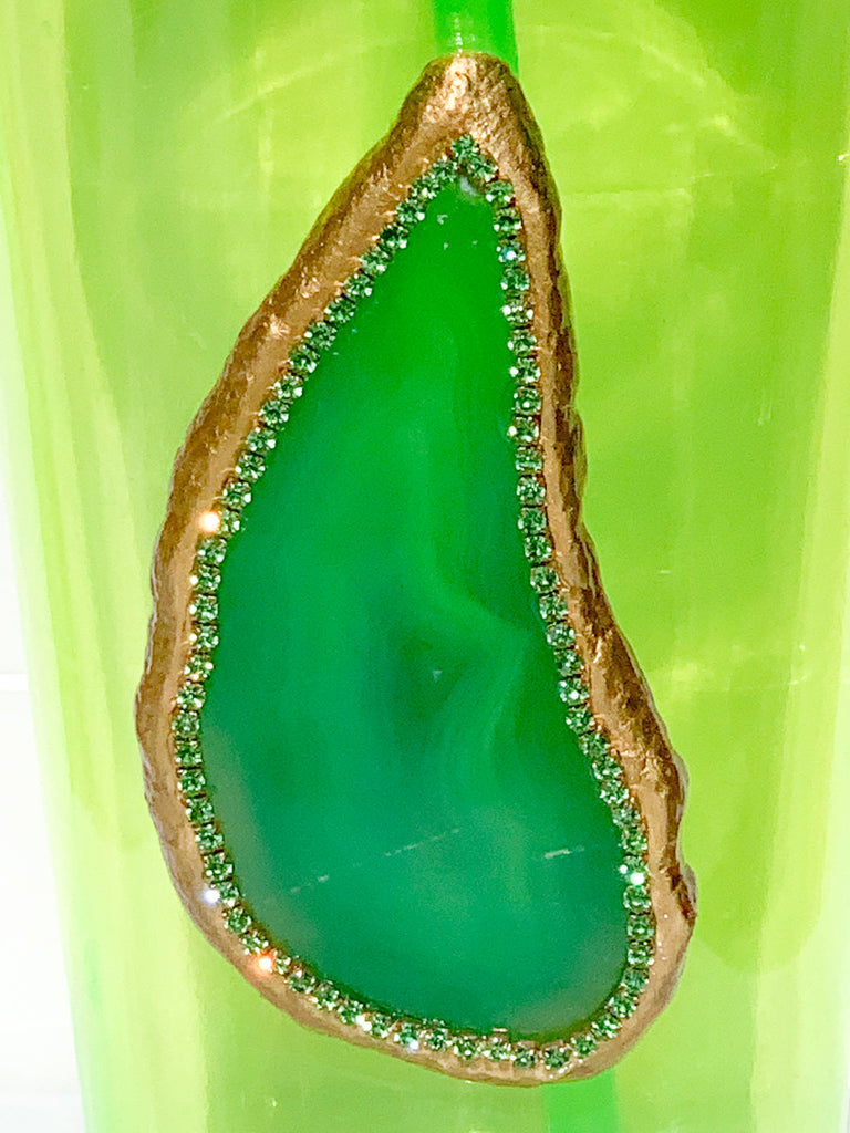 *♡* Please note that each item is handmade and colors may reflect slight differences than the ones pictured. Due to the delicate nature of the gemstones being natural stones, I am not responsible if you mishandle your cup/glass as the gemstones may break, crack or chip as well as the cup/glass itself if mishandled. I edge the 18kt gold edged stones by hand and over time the gold may fade or chip with multiple washes. PLEASE HAND WASH your glasses/cups/mugs with care.