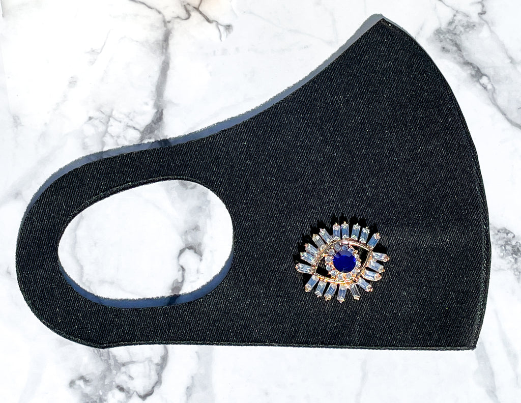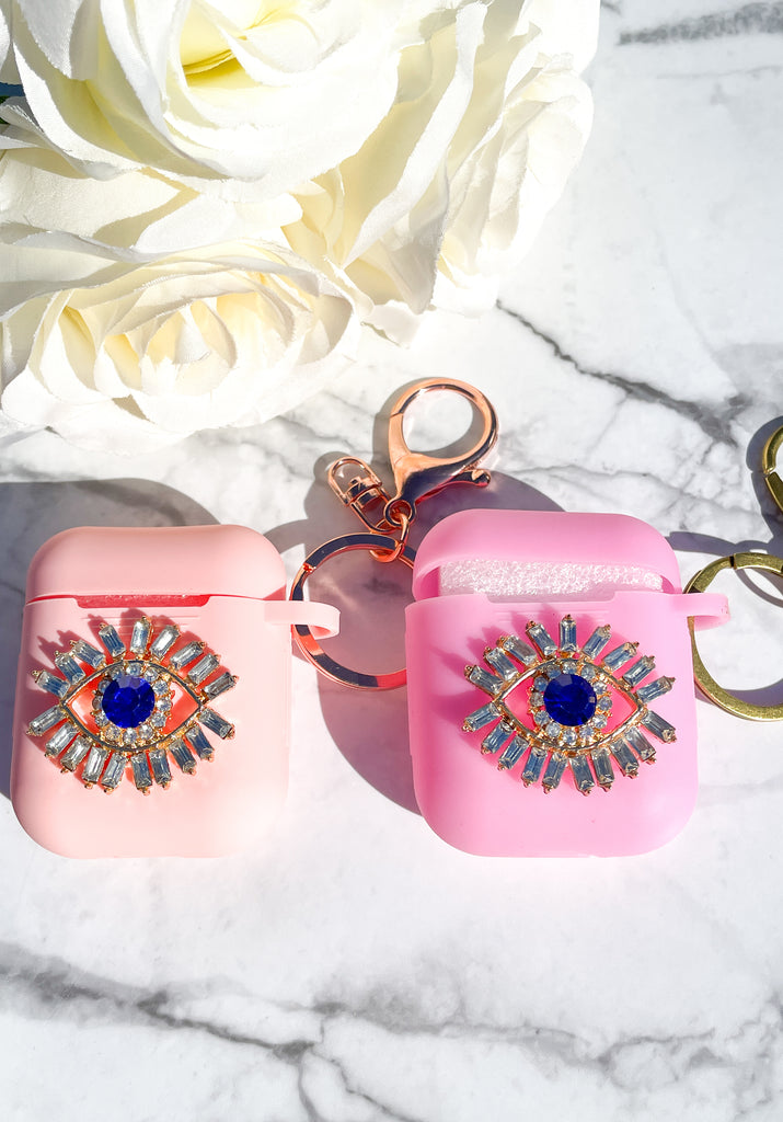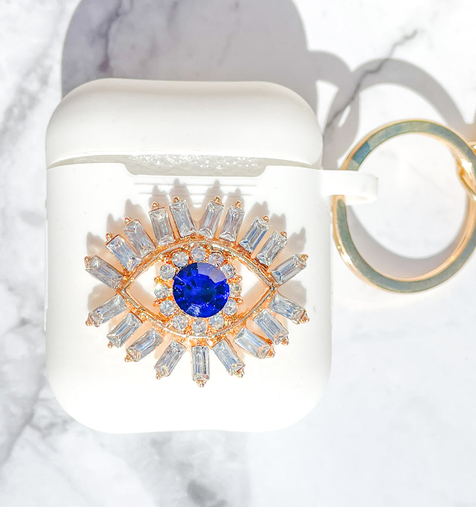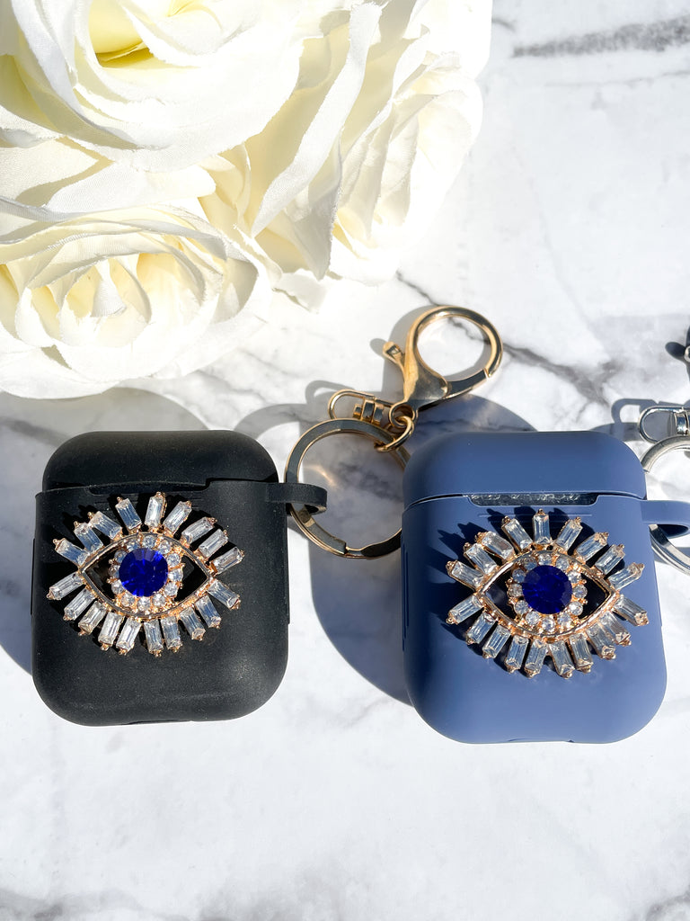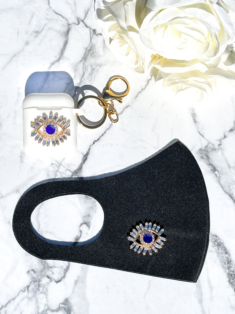 Gold and Rhinestones Blue Evil Eye AirPods Case and Face Mask 3