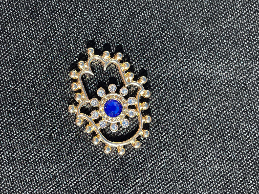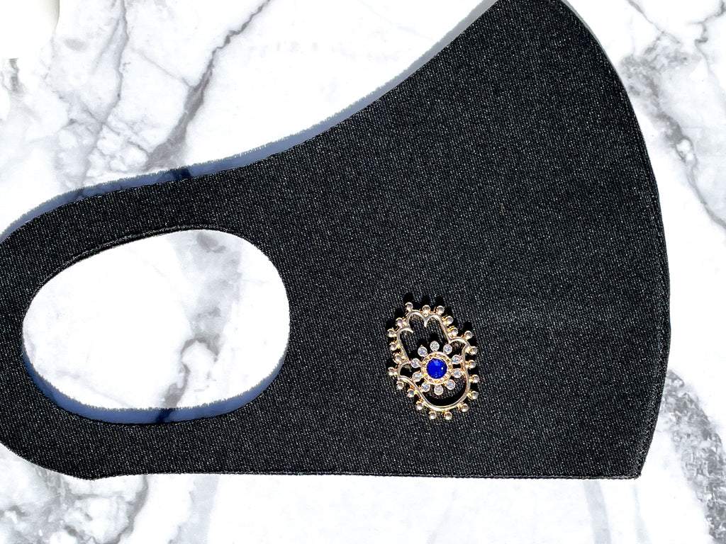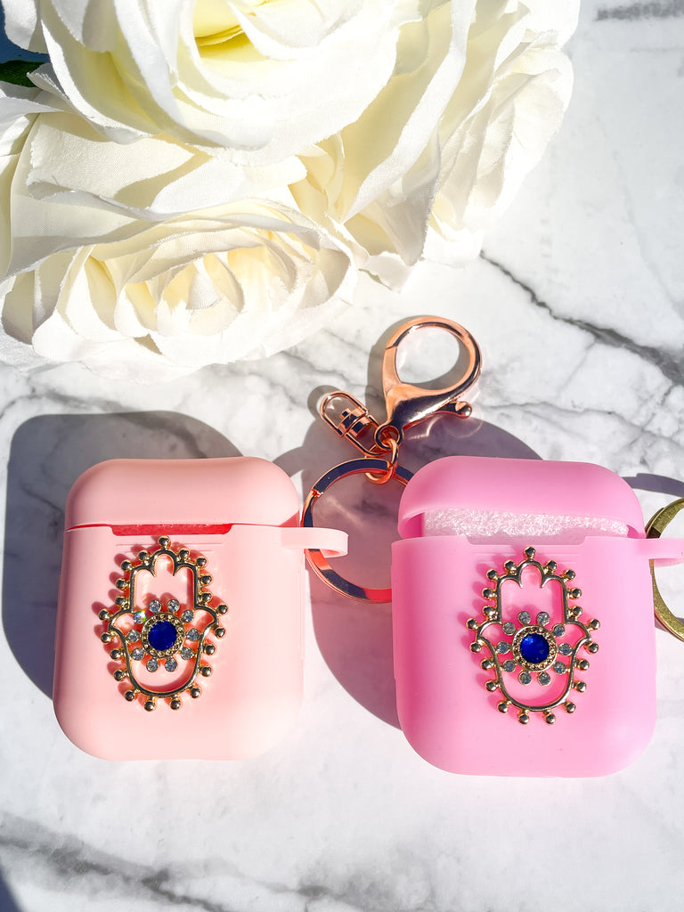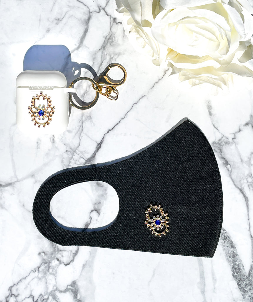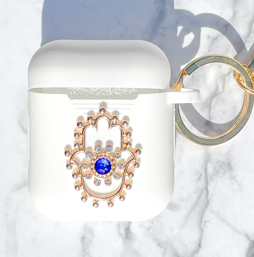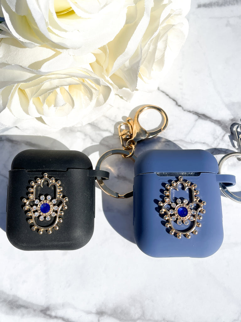 Gold and Rhinestones Blue Hamsa AirPods Case and Face Mask