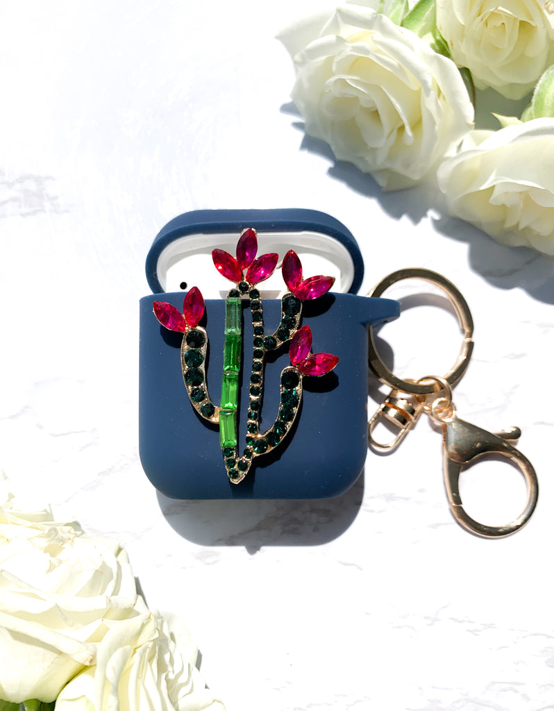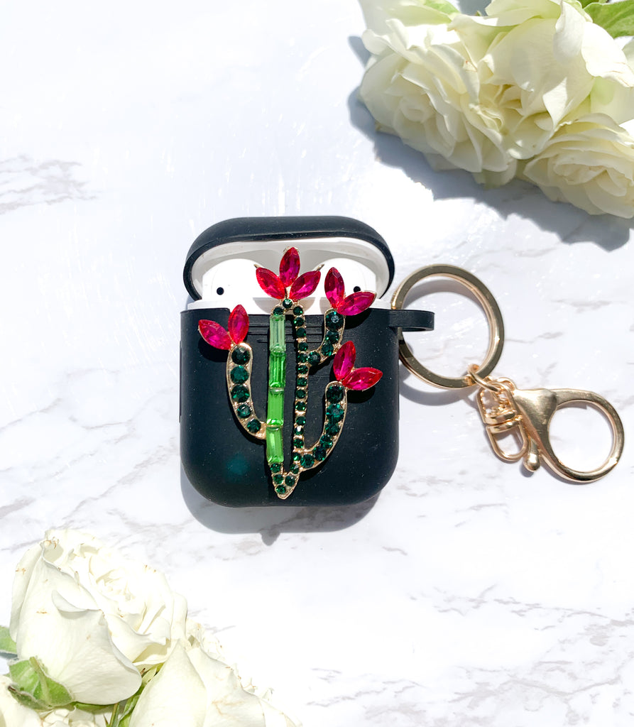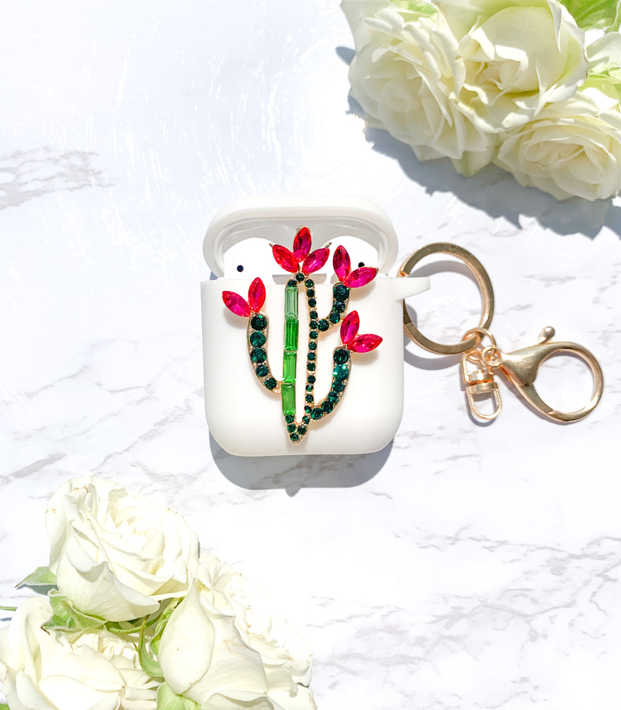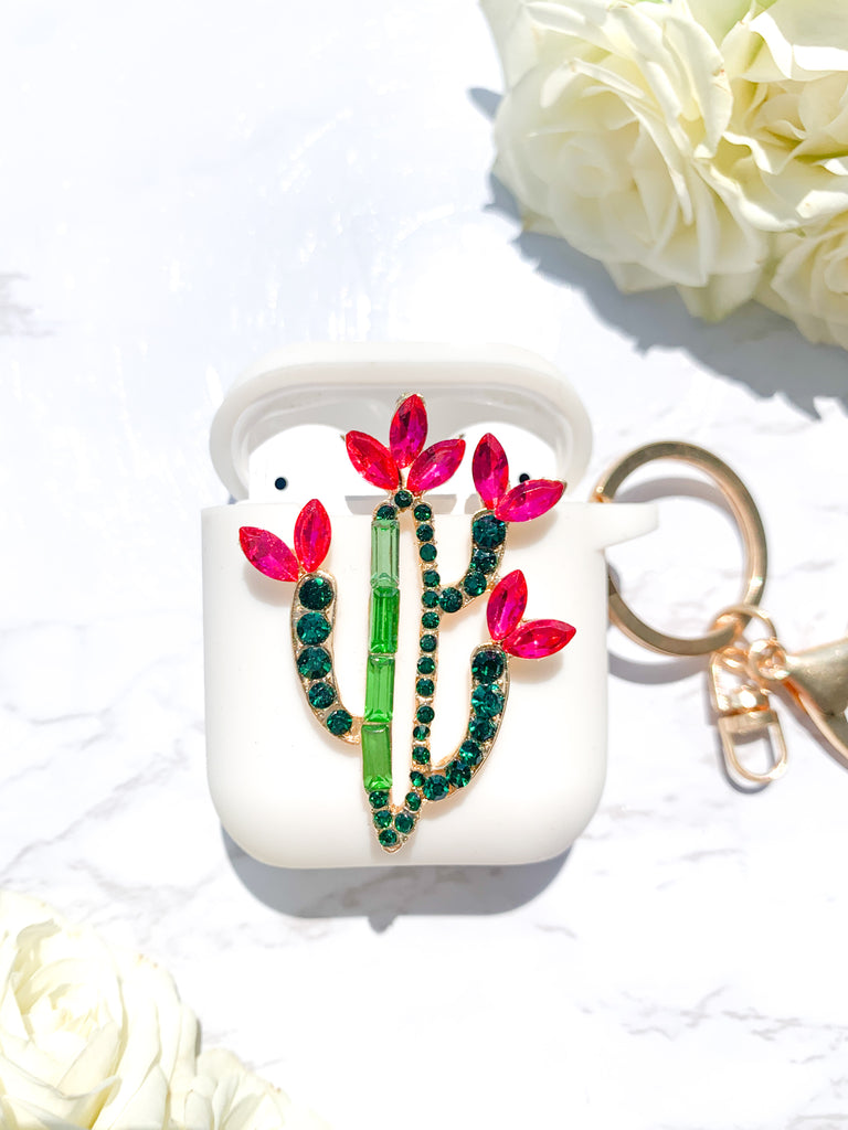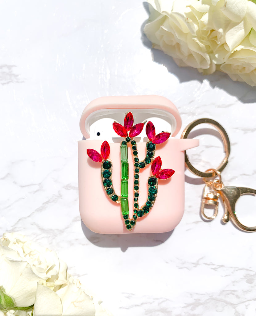 Green & Pink Rhinestone Cactus AirPods Case - Customize Your Case Color!