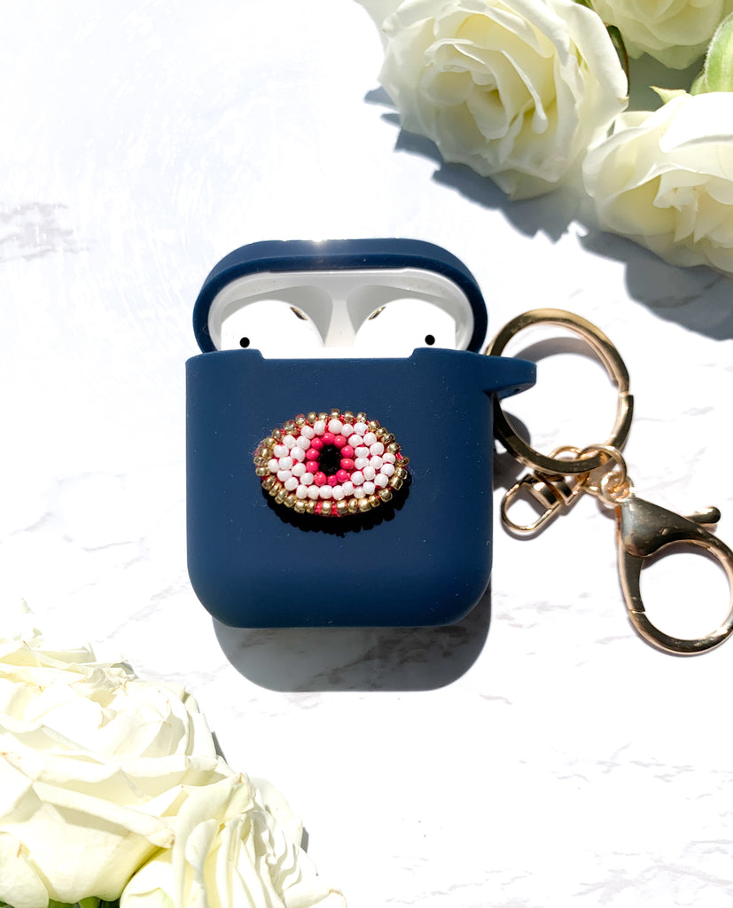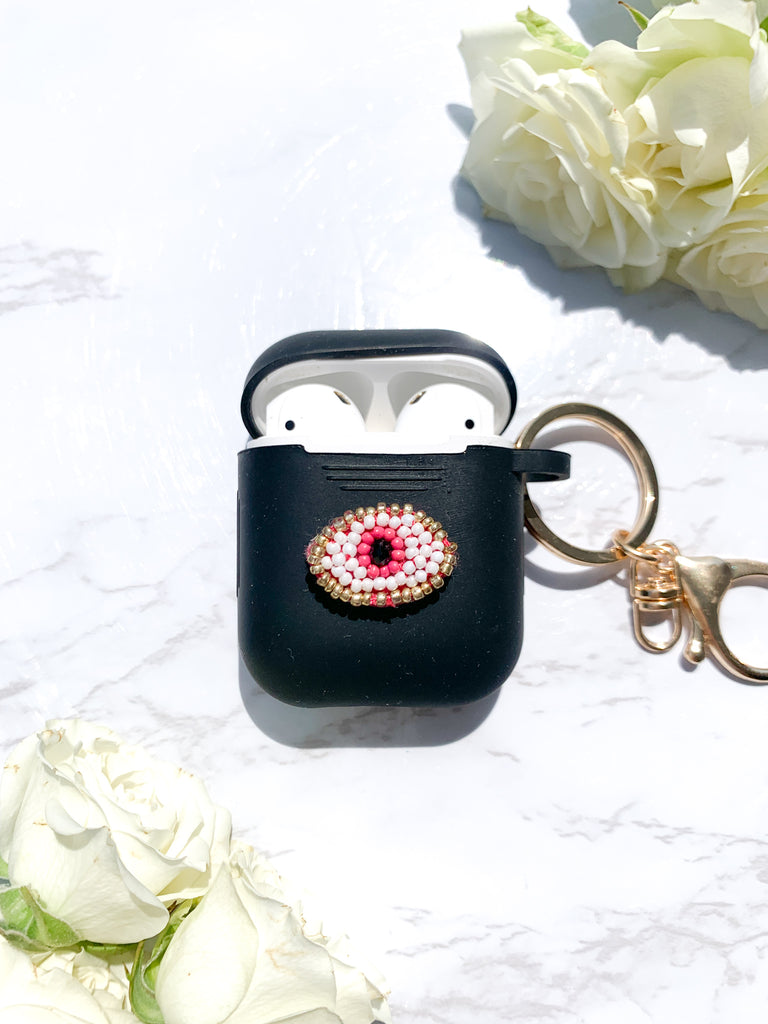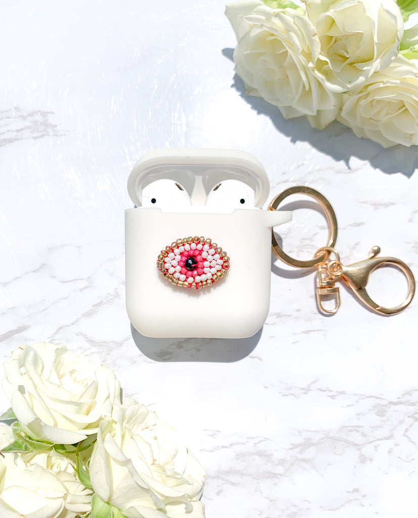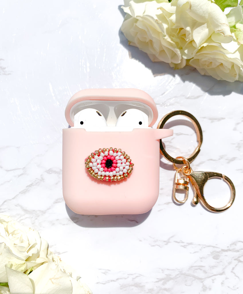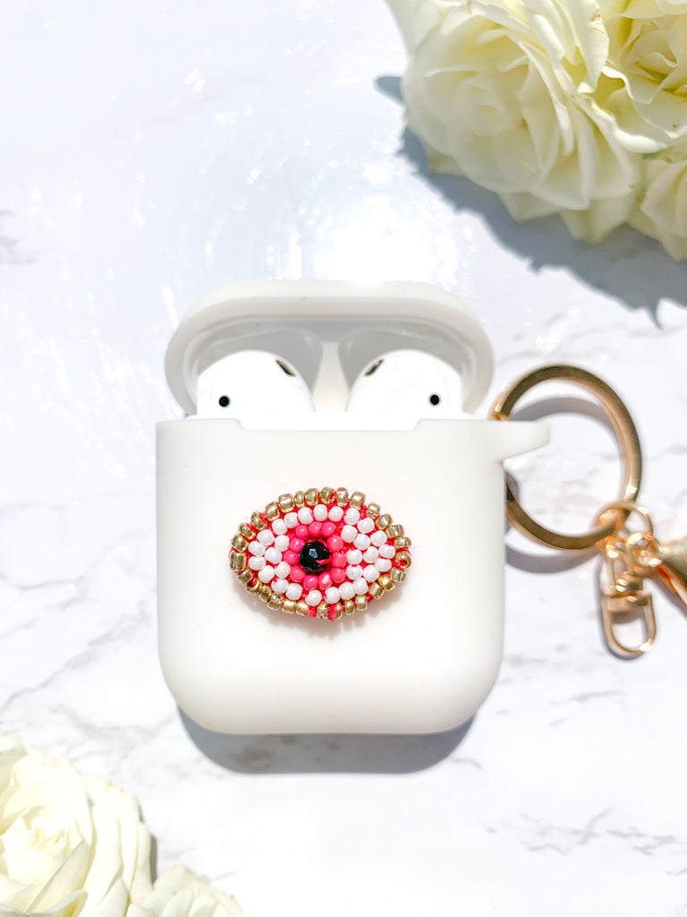 Pink, Gold & White Beaded Evil Eye AirPods Case - Customize Your Case Color!