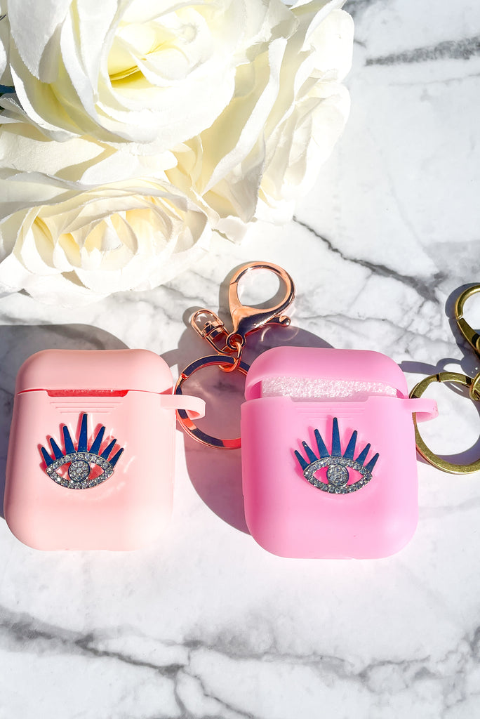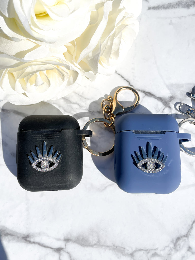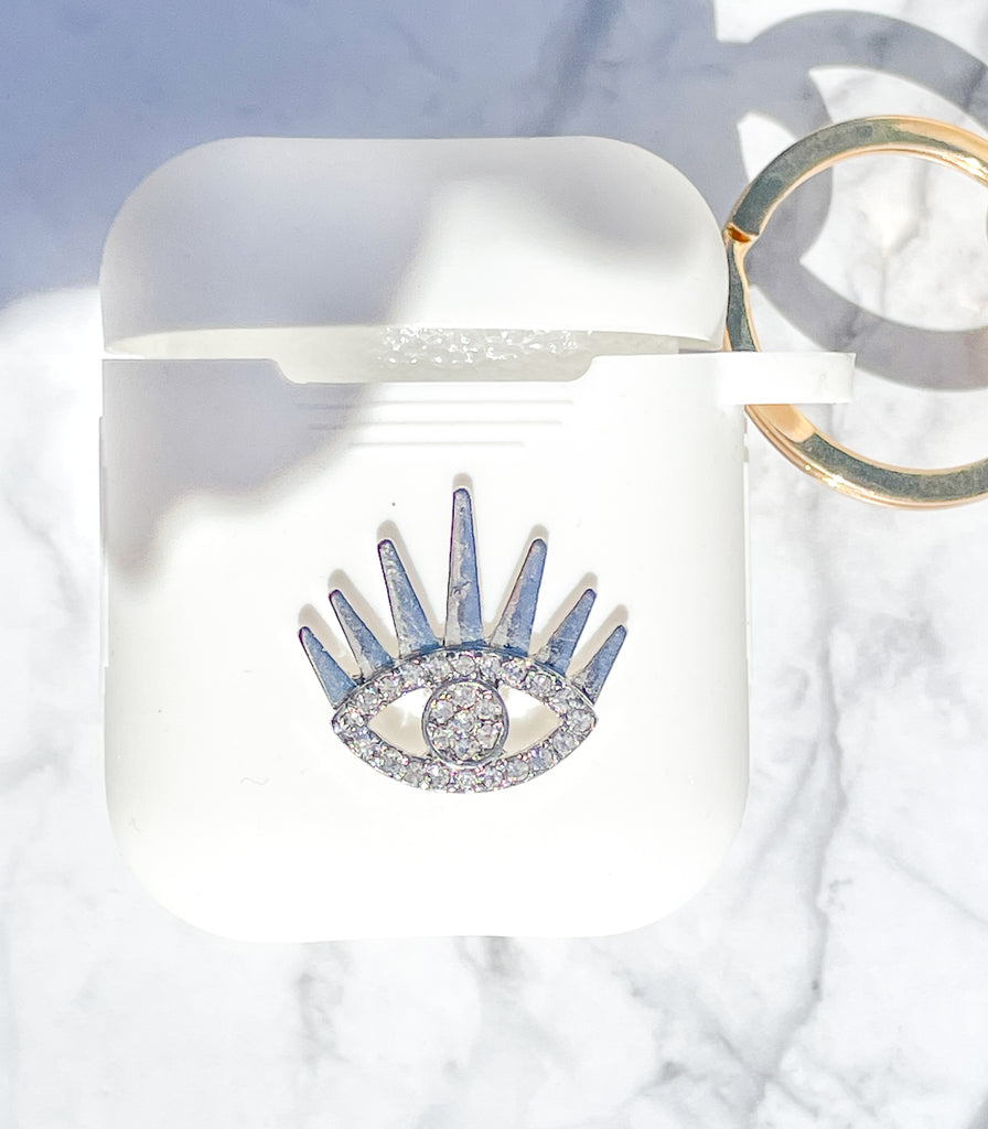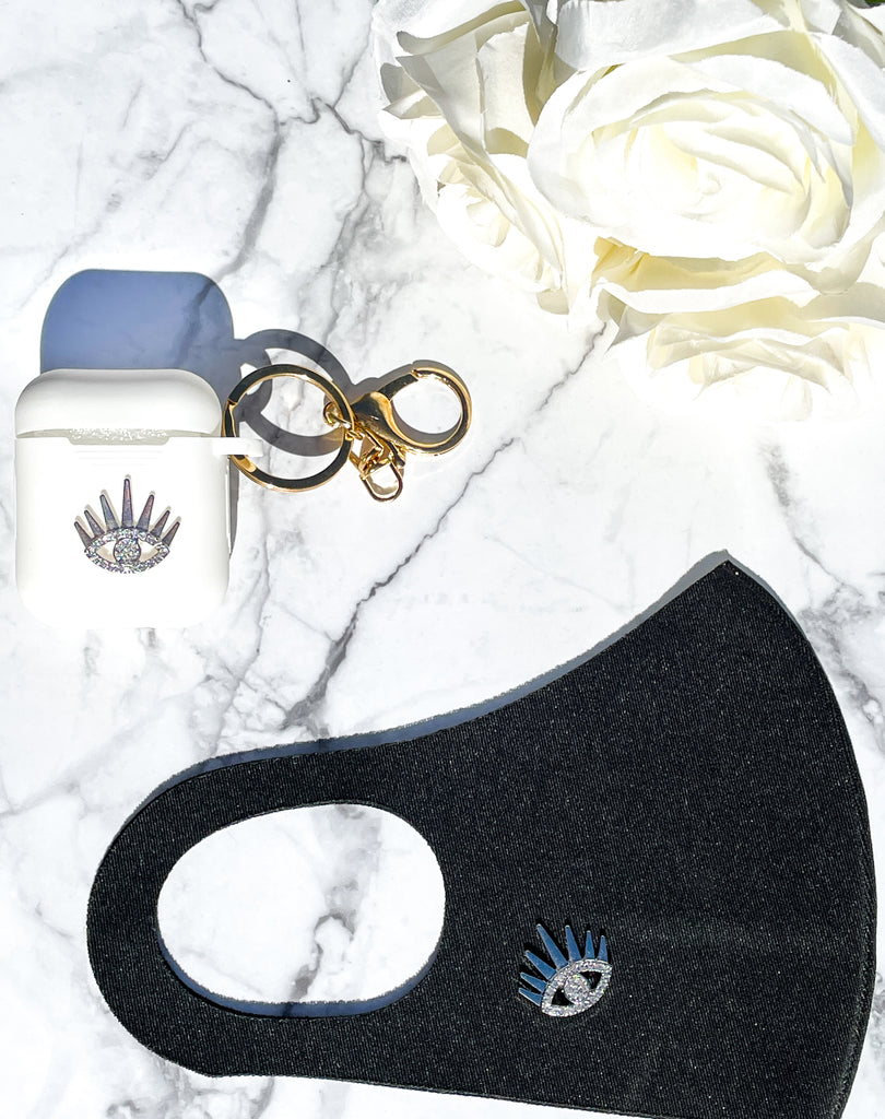 Silver and Rhinestones Spiky Evil Eye AirPods Case and Face Mask