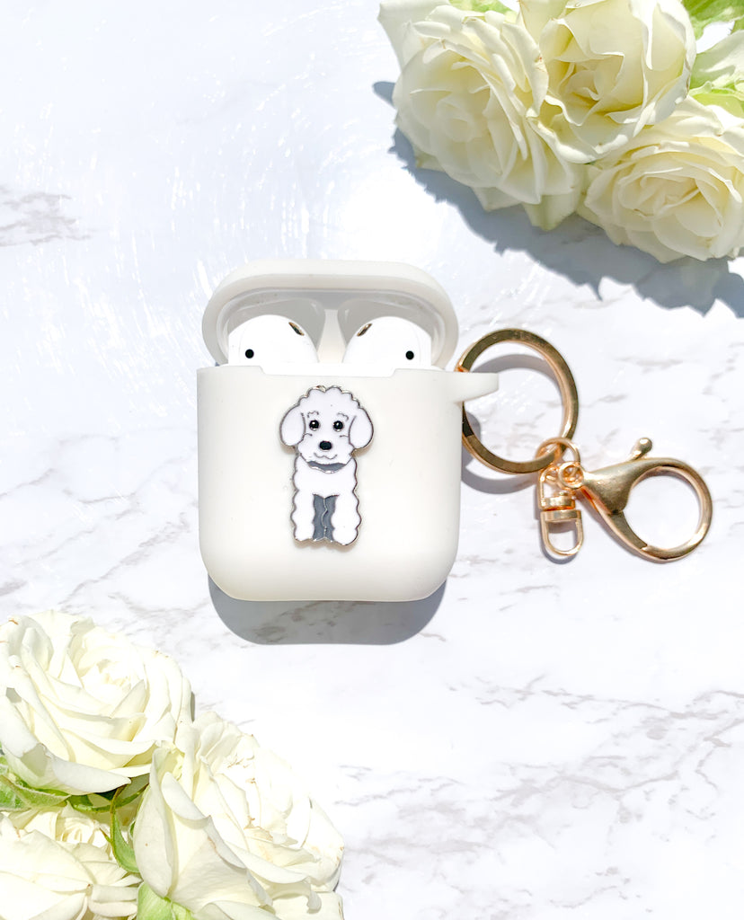 White Doodle Dog AirPods Case - Customize Your Case Color!