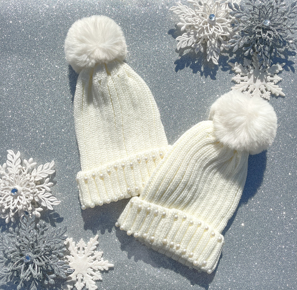 *β‘* Please note that each item is handmade and colors may reflect slight differences than the ones pictured. Due to the delicate nature of the knitting/pearls, I am not responsible if you mishandle your hat as the pearls may come off and the knitting may snag or come loose over time. Hand wash and lay flat to dry only.