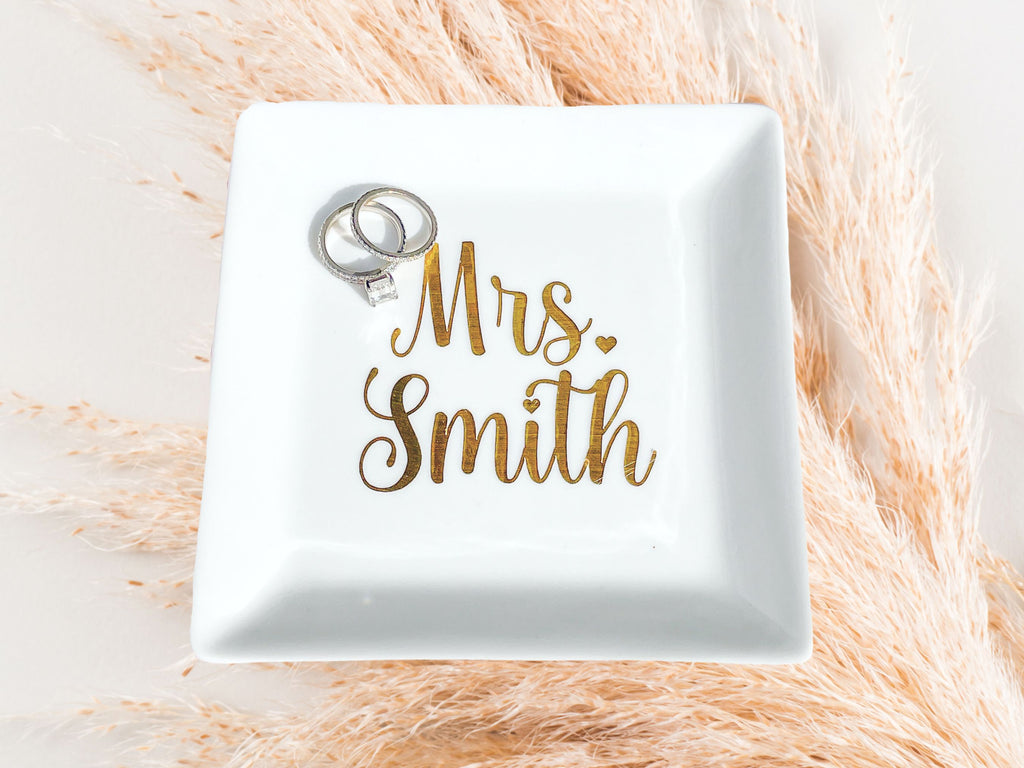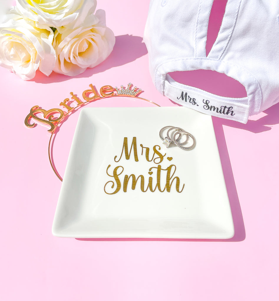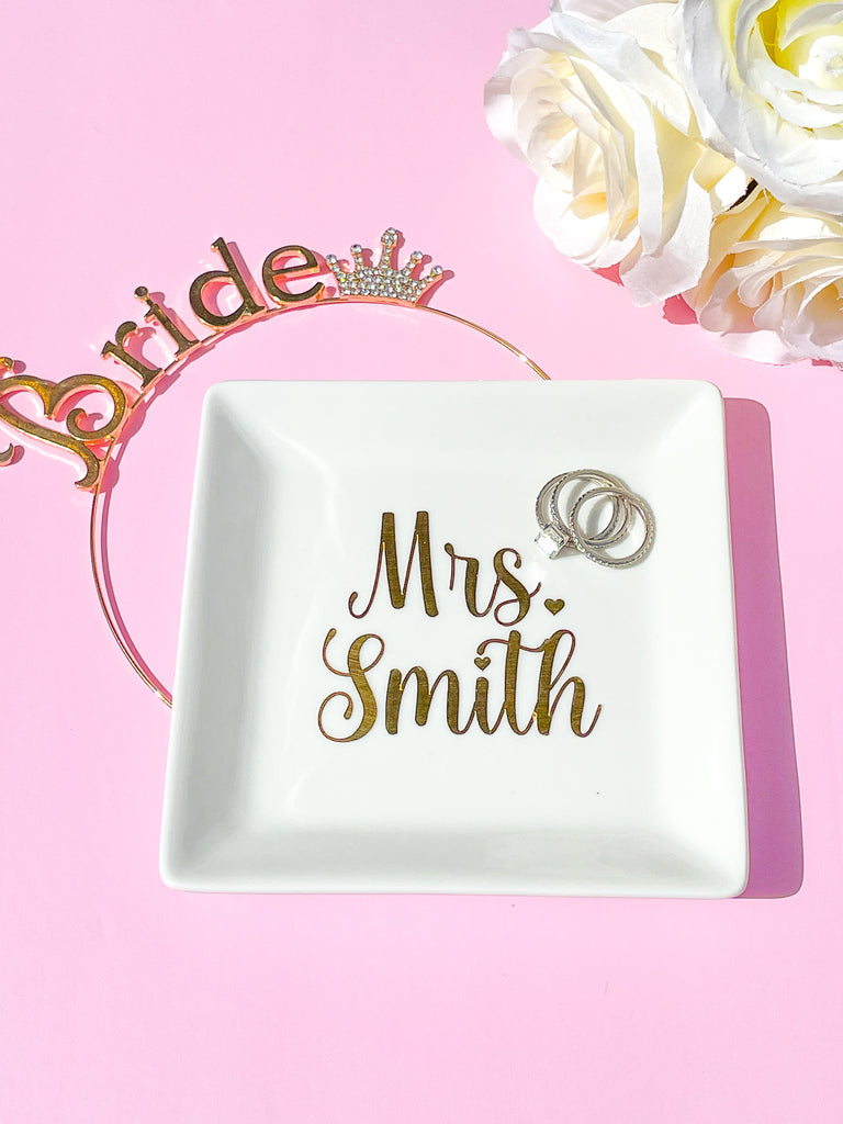 Custom Bridal Ring Tray - Custom Bridal Ring Tray / Bachelorette Ring Tray / Honeymoon Ring Tray / Personalized Mrs Ring Tray / Custom Name Ring Tray