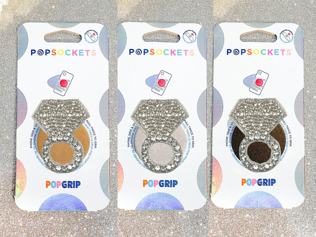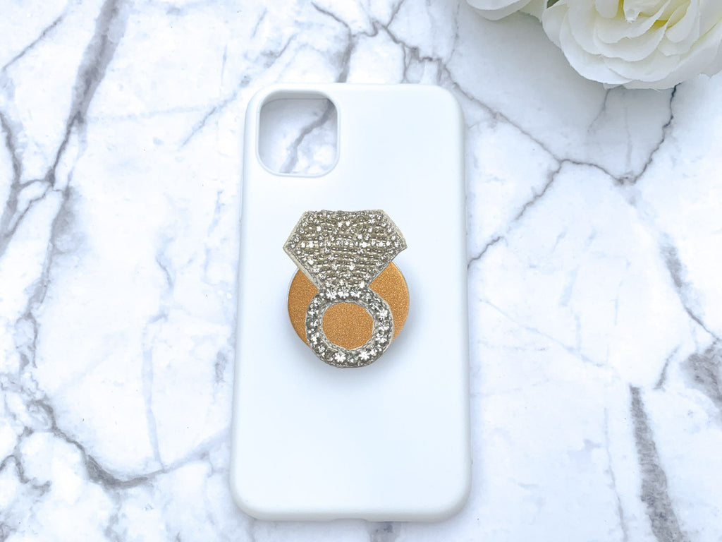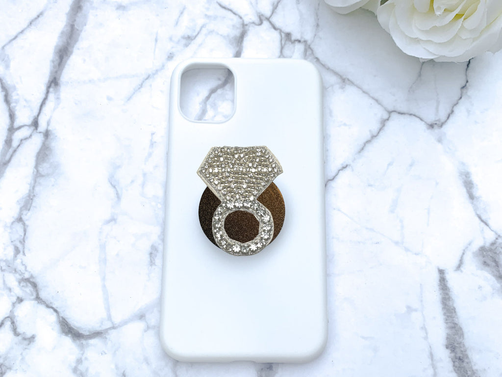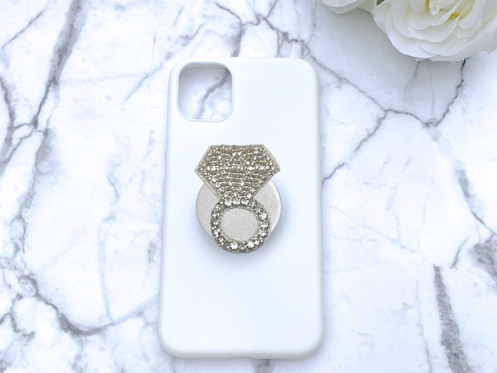 Silver Diamond Ring Phone Popsocket - Choose Your Background Color!