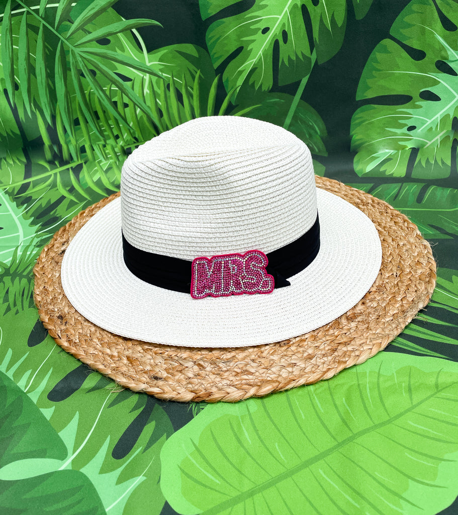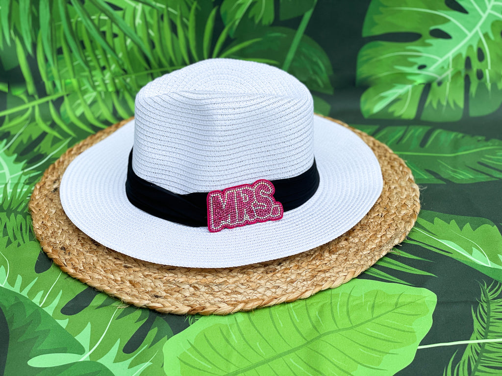 Pink Rhinestone Mrs. Bridal Panama Hat