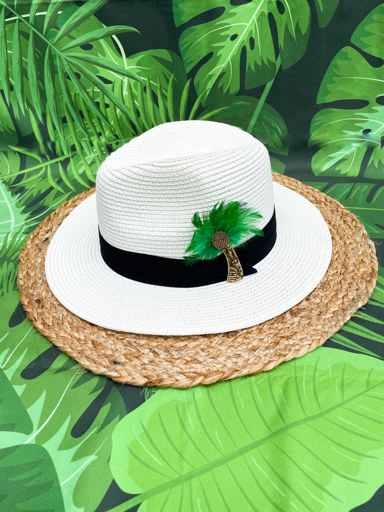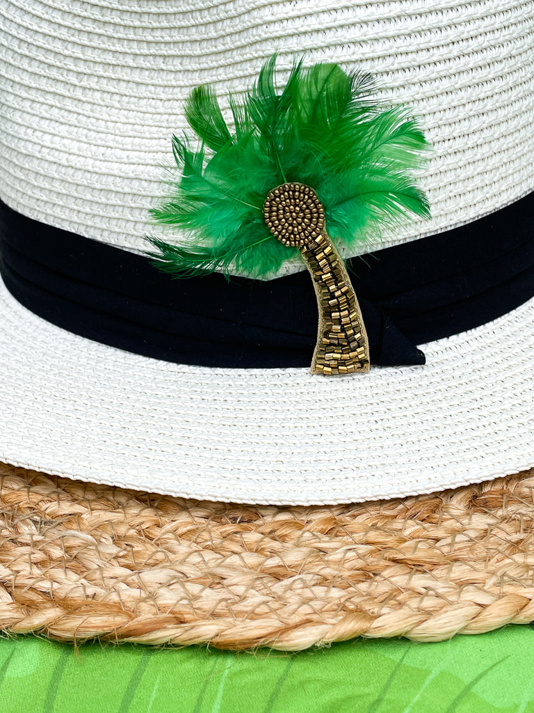 Beaded Feather Palm Tree Panama Hat