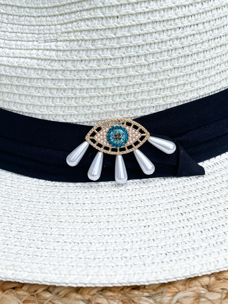 Gold, Rhinestones and Pearl Tears Blue Evil Eye Panama