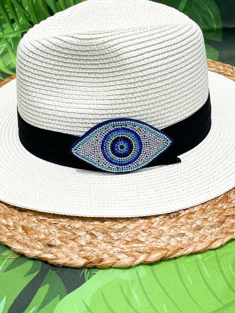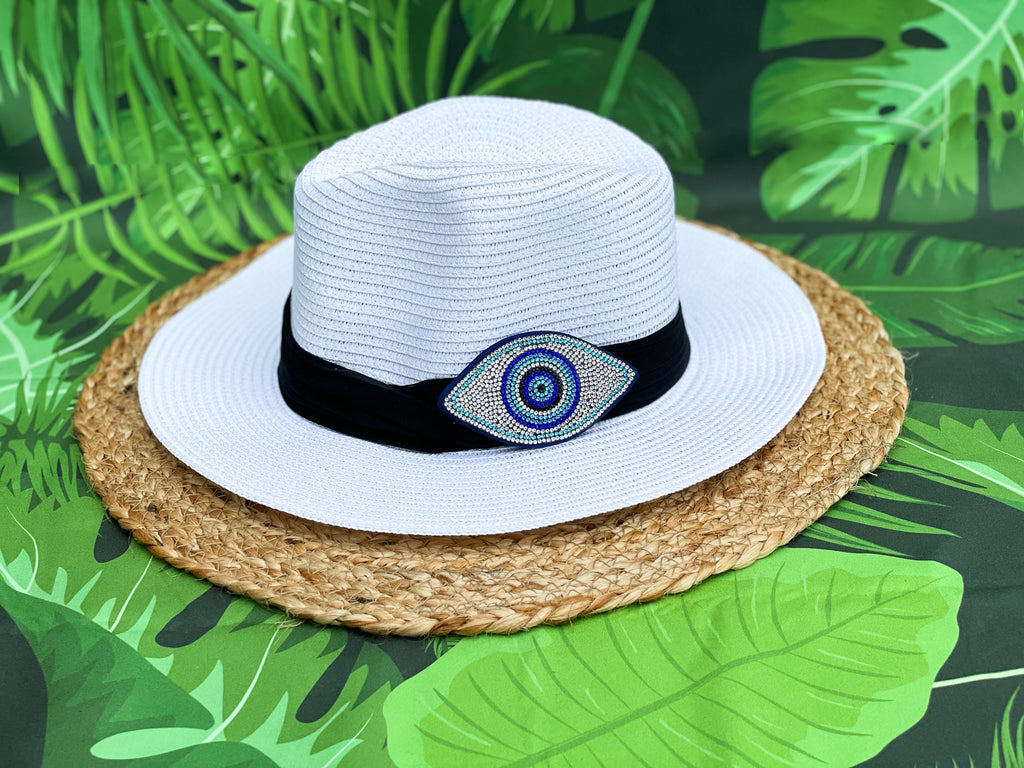 Rhinestone Blue & Light Blue Evil Eye Panama Hat