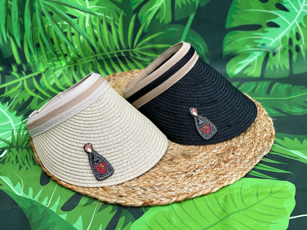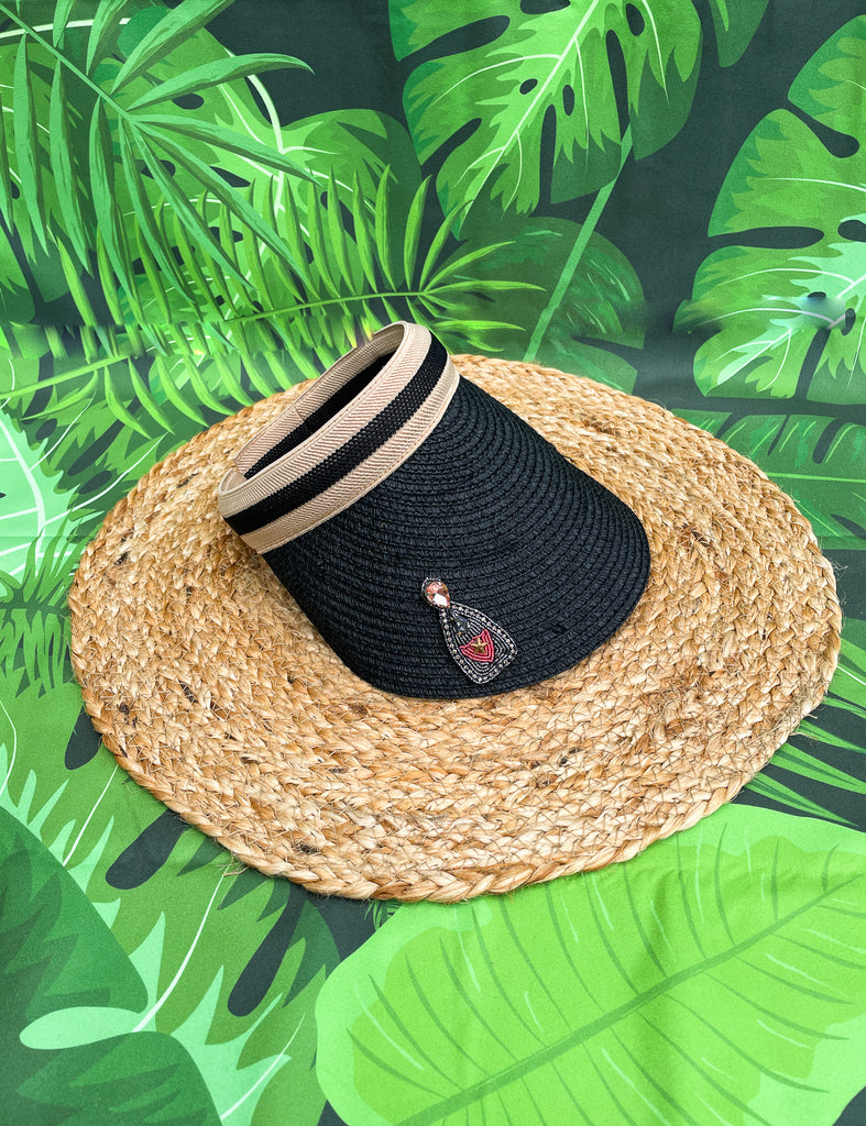 Black and Pink Rhinestone Tequila or Champagne Visor - Visors Available in Tan and Black!