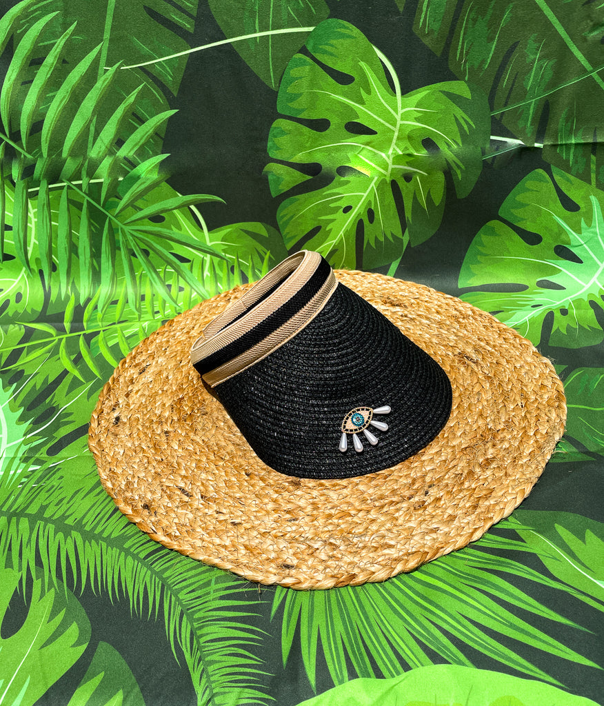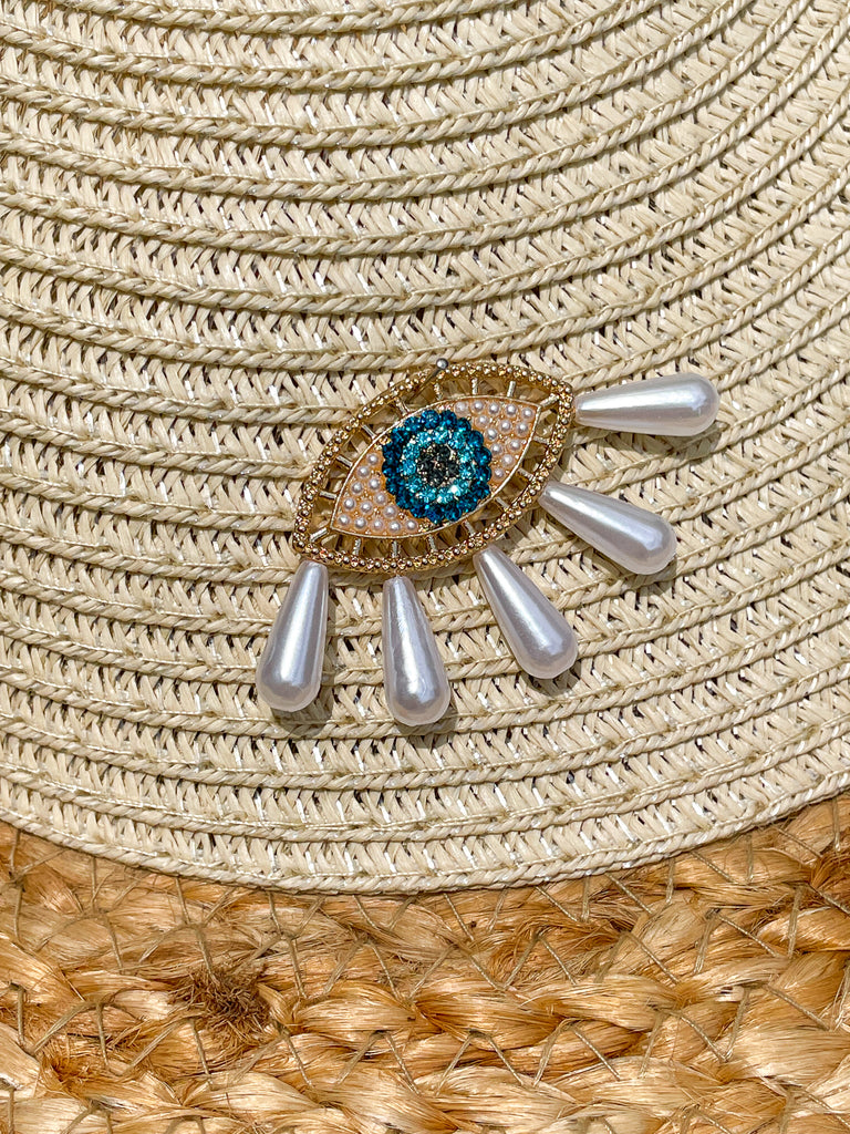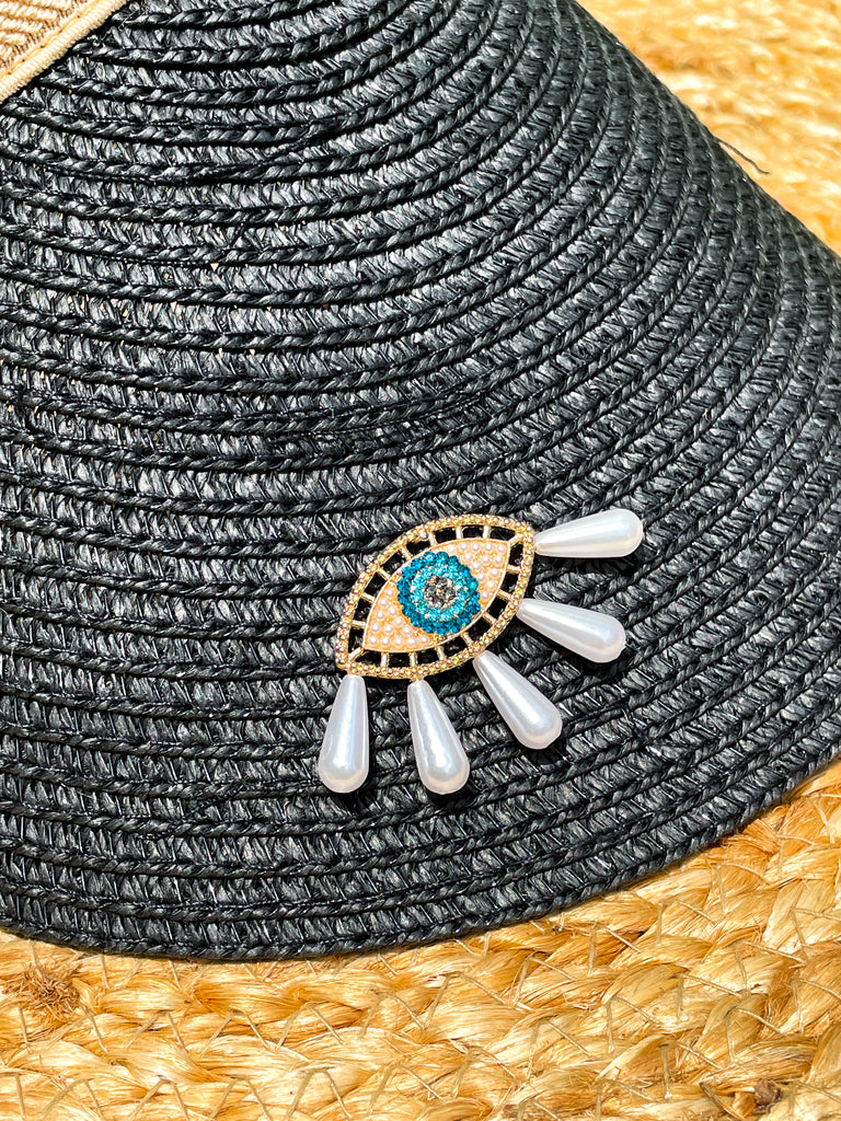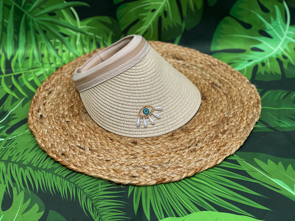Gold, Rhinestones and Pearl Tears Blue Evil Eye Visor - Visors Available in Tan and Black!