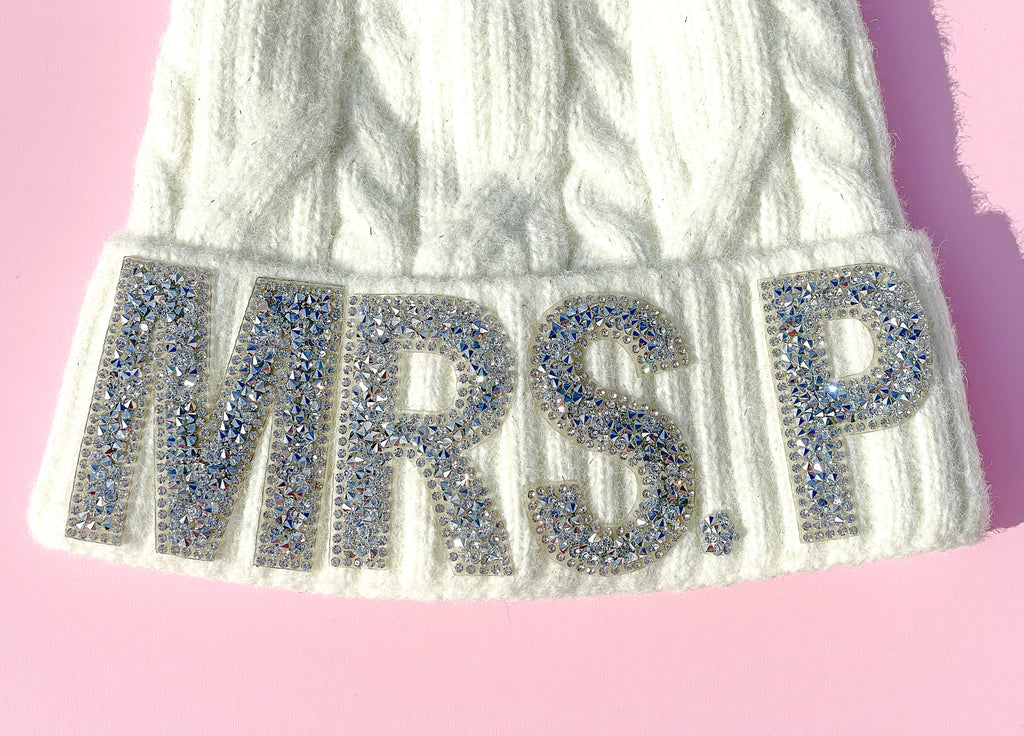Mrs Rhinestone Beanie - Mrs Beanie / Bride Hat / Ski Beanie / Fur Beanie / Knit Beanie / Monogram Beanie / Bling Beanie / Future Mrs Cap