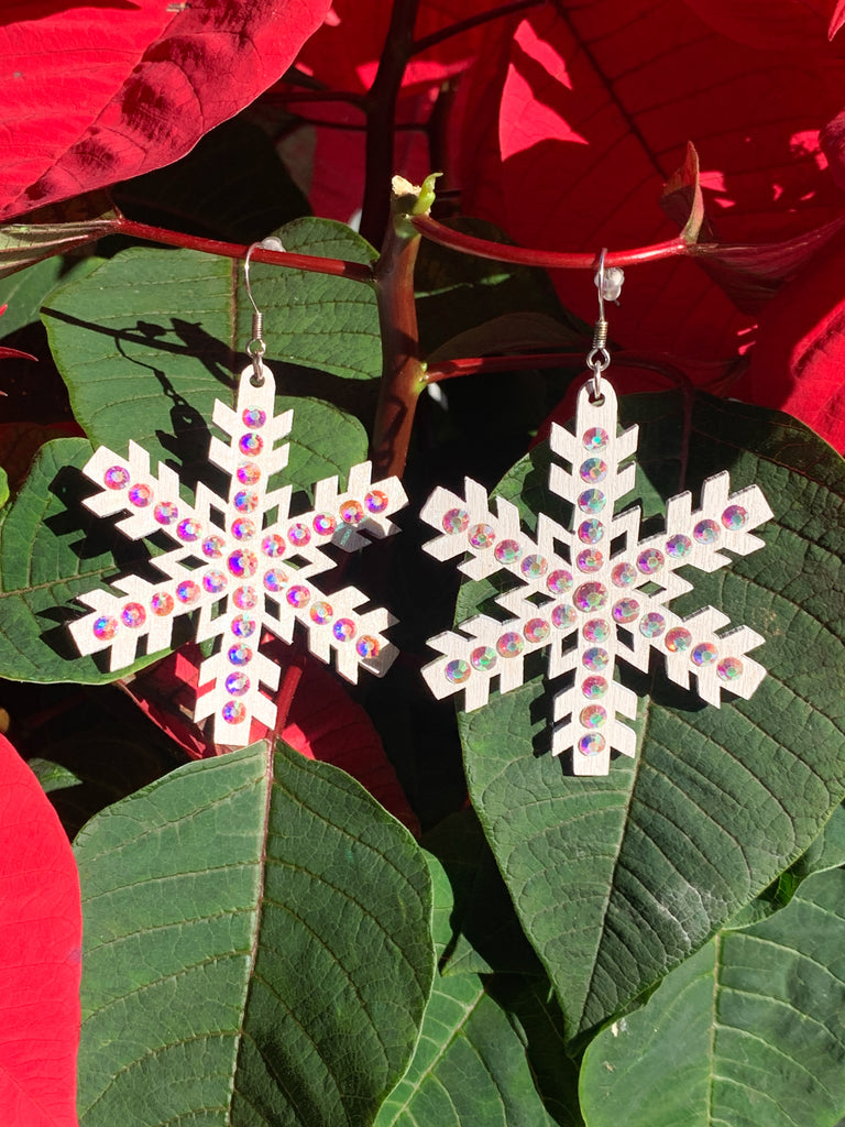 AB Rhinestones Wood Snowflake Christmas Earrings