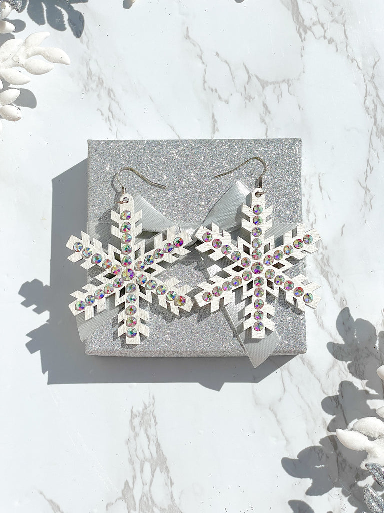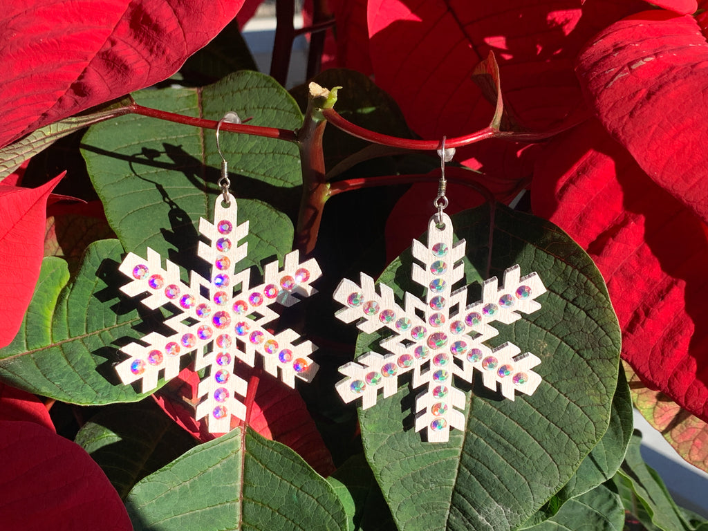 ✨❄️ AB Rhinestones Wood Snowflake Christmas Earrings - Holiday Earrings / Festive Earrings / Snowflake Earrings / Wood Earrings / Xmas Earrings ❄️✨