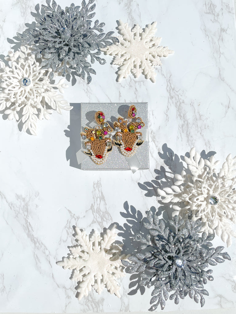π¦ Beaded and Rhinestone Rudolph Christmas Earrings Holiday Earrings / Festive Earrings / Reindeer Earrings / Rudolph Earrings / Xmas Earrings π¦