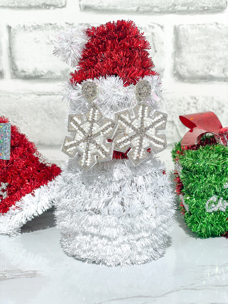 Beaded and Rhinestone Snowflake Christmas Earrings