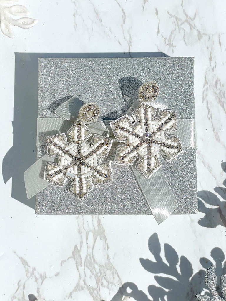 ❄️ Beaded and Rhinestone Snowflake Christmas Earrings Holiday Earrings / Festive Earrings / Bling Earrings / Snowflake Earrings / Xmas Earrings ❄️