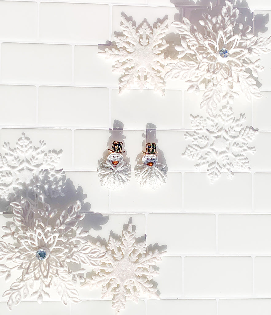 ☃️☃️ Beaded and Rhinestone Snowman Christmas Earrings - Holiday Earrings / Festive Earrings / Snowman Earrings / Frosty Earrings / Xmas Earrings ☃️☃️