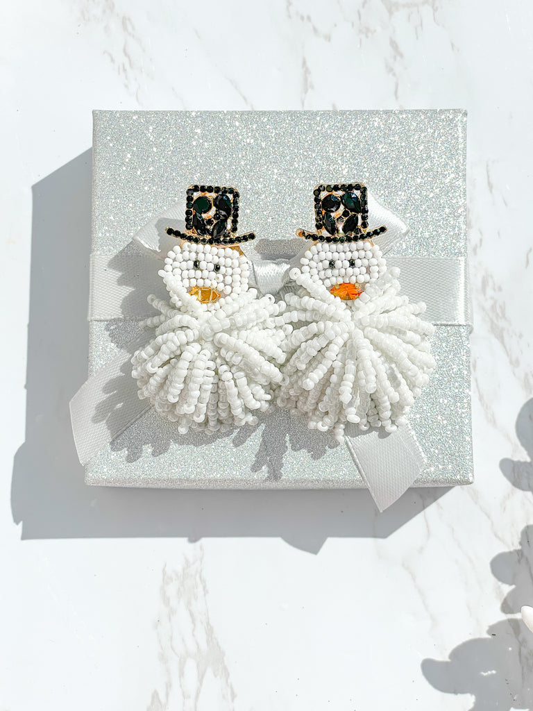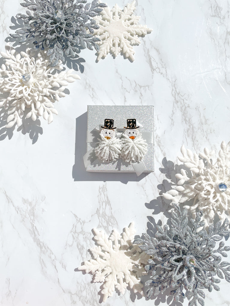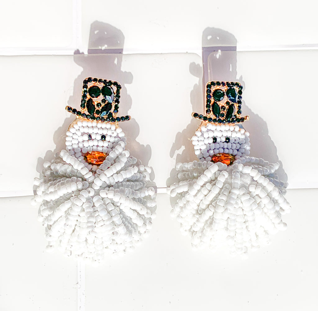 ☃️ These pearly beaded Snowman earrings are the perfect addition to your holiday attire! You will receive nothing but compliments at your holiday and Christmas parties with these gorgeous and fun statement earrings