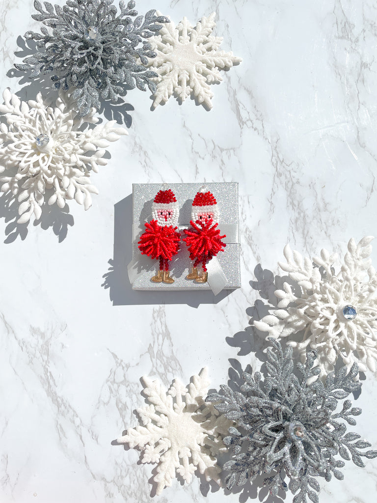 π½ These beaded Santa Clause earrings are the perfect addition to your holiday attire! You will receive nothing but compliments at your holiday and Christmas parties with these gorgeous and fun statement earrings. The legs even have little gold shoes attached, how fun!