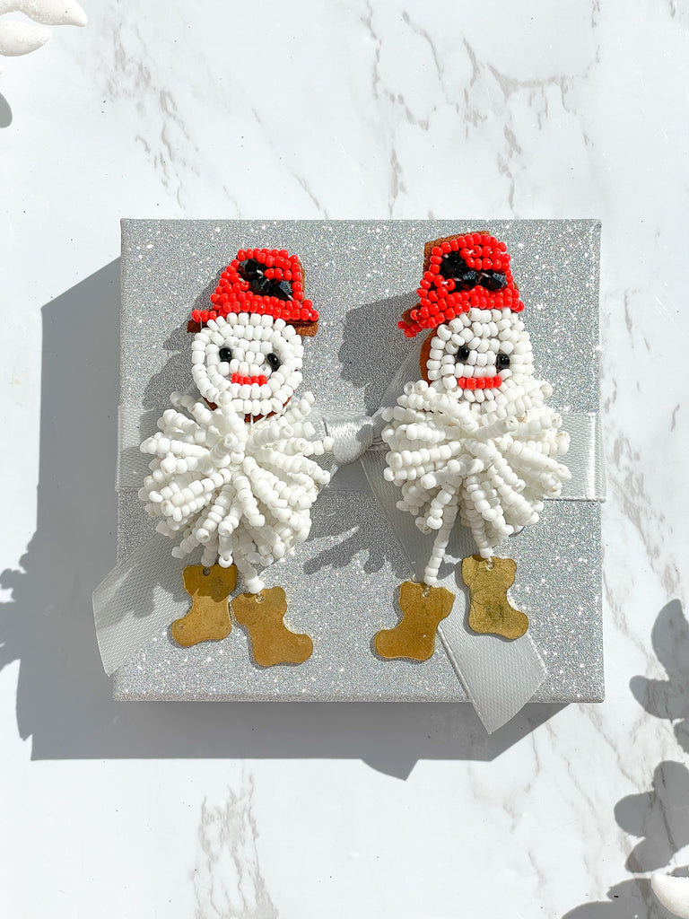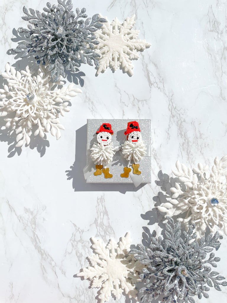 ☃️ These beaded Snowman earrings are the perfect addition to your holiday attire! You will receive nothing but compliments at your holiday and Christmas parties with these gorgeous and fun statement earrings. The legs even have little gold shoes attached, how fun!
