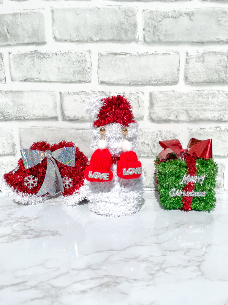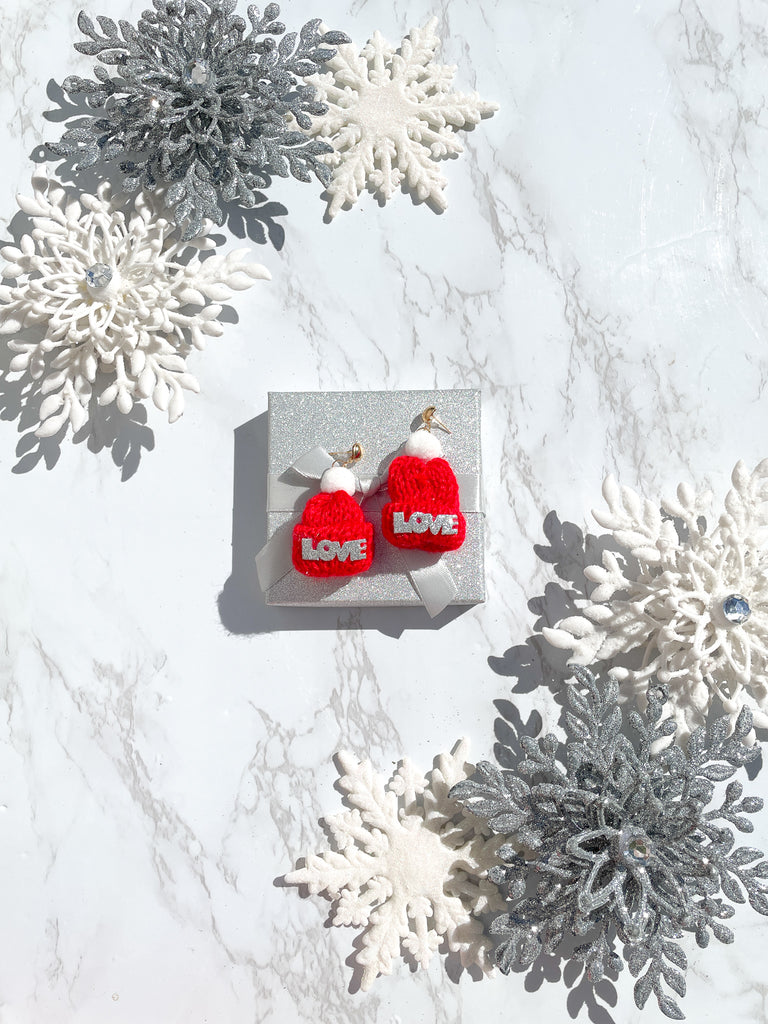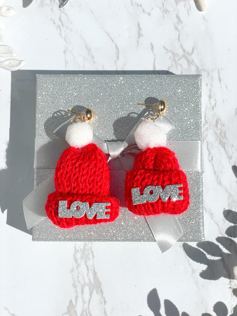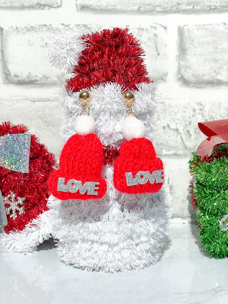β„οΈπŸŽ…πŸ½ Glitter Love Knitted Beanie Christmas Earrings - Holiday Earrings / Festive Earrings / Knit Beanie Earrings / Love Earrings / Xmas Earrings πŸŽ…πŸ½β„οΈ