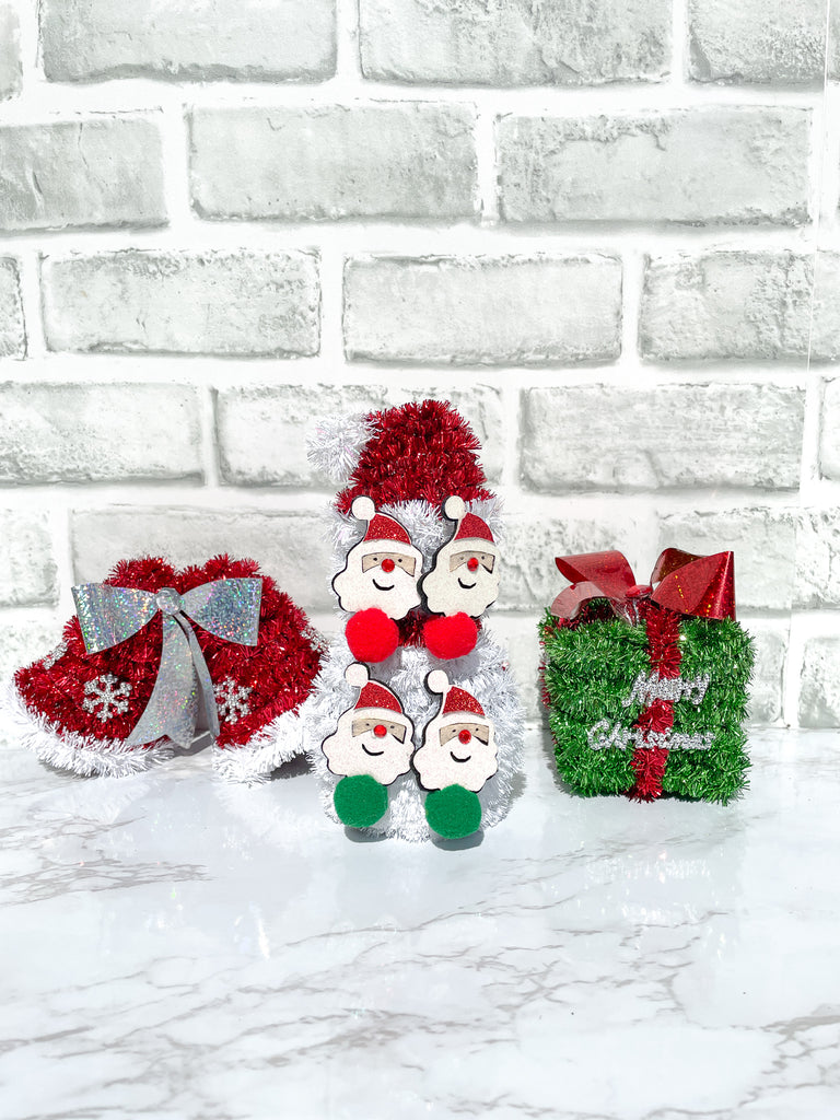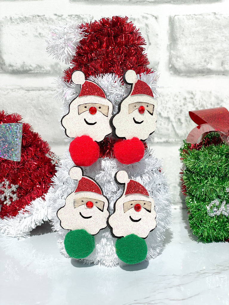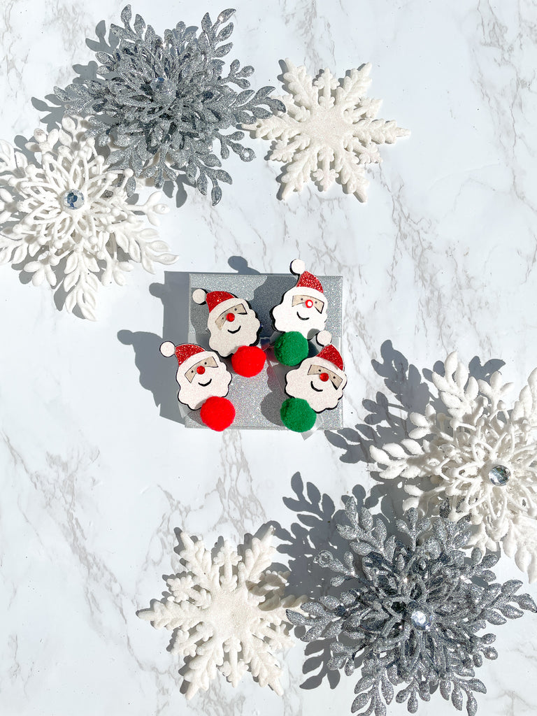π½ Glitter Santa Christmas Earrings - Holiday Earrings / Festive Earrings / Santa Earrings / Glitter Santa Earrings / Xmas Earrings / Pom Poms π