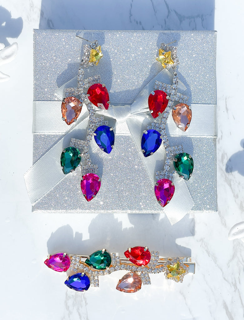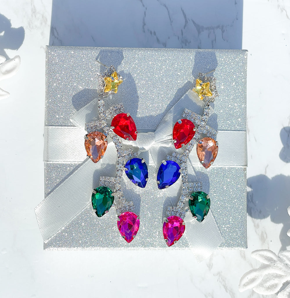 π These rhinestone Christmas lights earrings are the perfect addition to your holiday attire! You will receive nothing but compliments at your holiday and Christmas parties with these gorgeous and fun statement earrings
