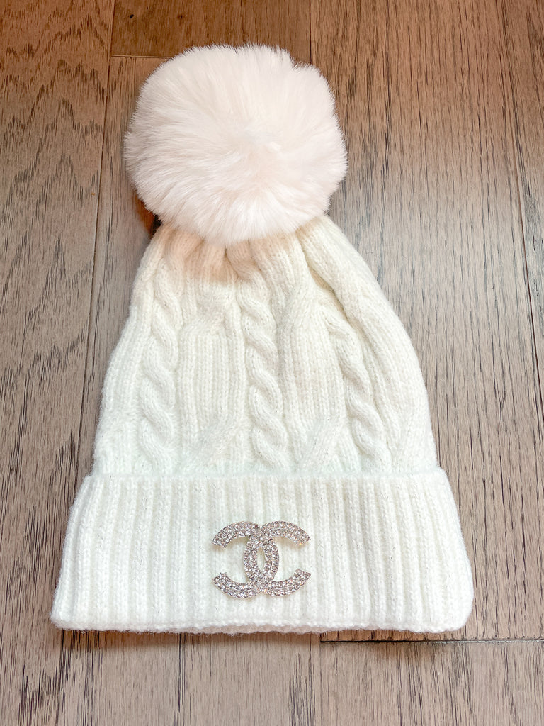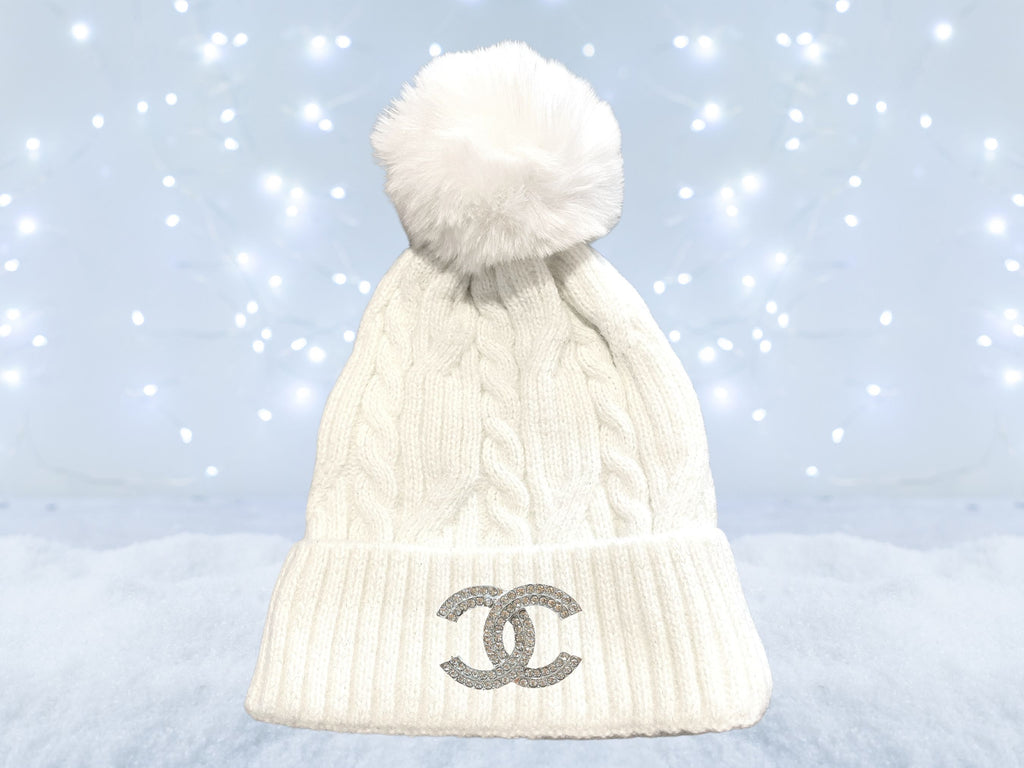 Silver Rhinestones Charm Beanie - Designer Beanie / Luxury Hat / Hat / Snow Beanie / Faux Fur Beanie / Winter Accessories / Rhinestone Beanie / Pearl Beanie / Bling Beanie