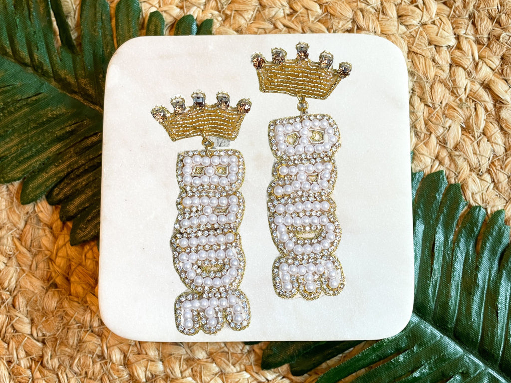 Beaded and Rhinestone Crown Bride Earrings