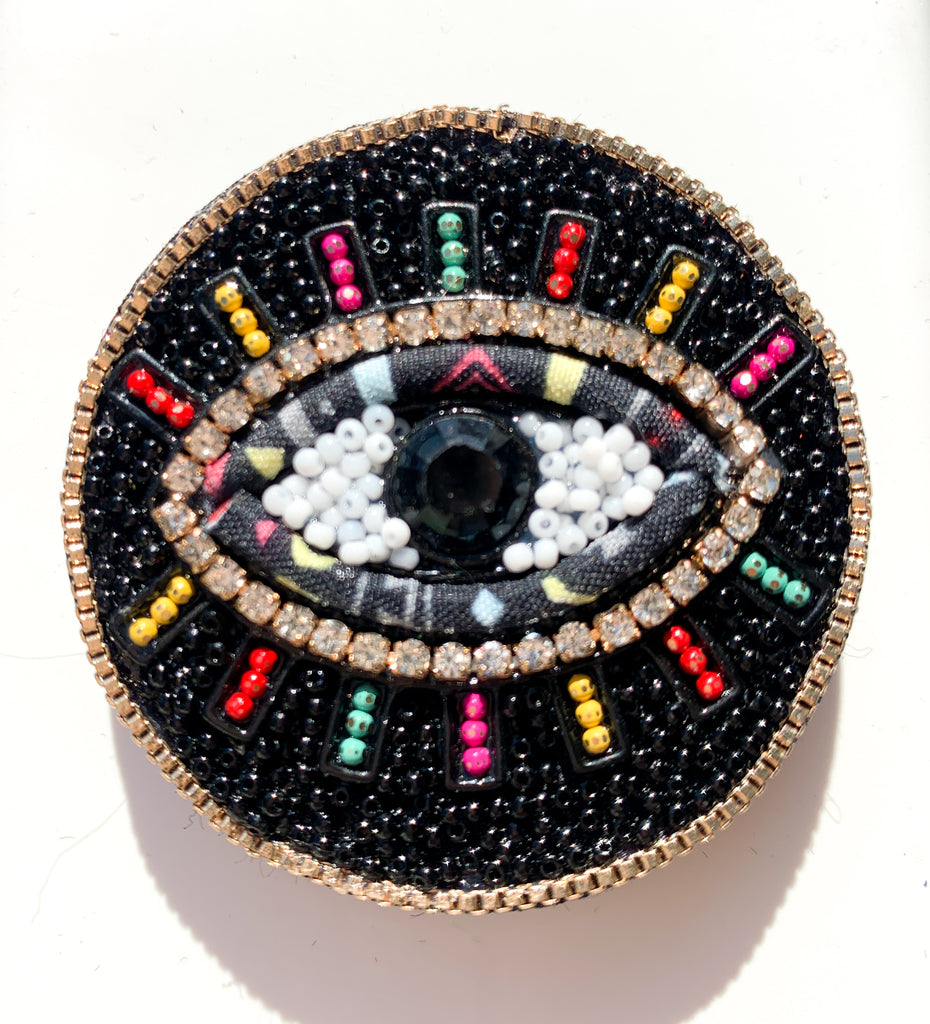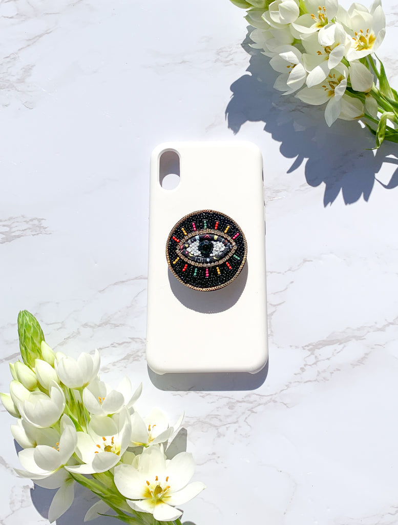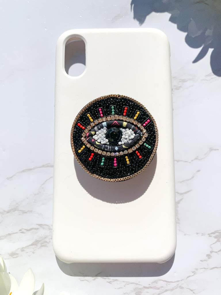 Black and Colorful Beaded Evil Eye with Rhinestones and Gold Chain Edging Phone Popsocket