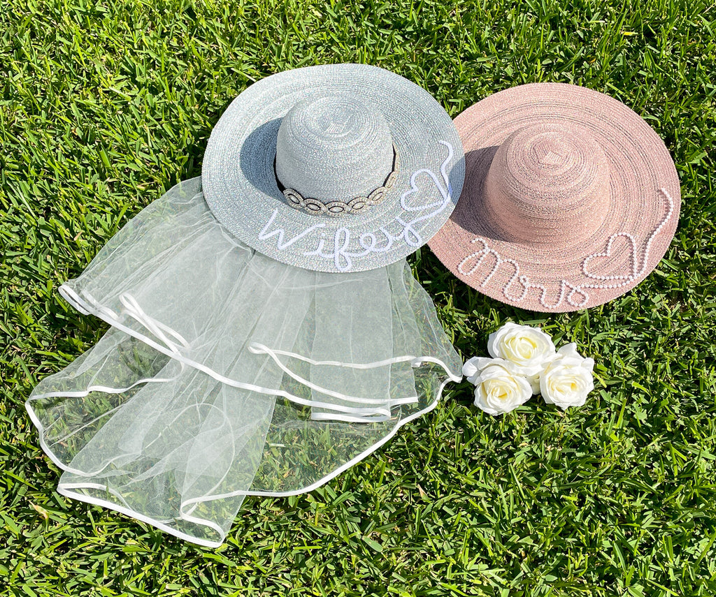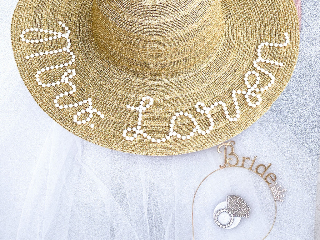Pearl "Custom Name" Bride, Bachelorette, Honeymoon Floppy Hat