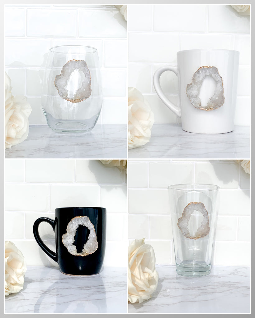 White Geode Mug, Wine Glass or Pint Glass 2 - Design Your Own Custom Item With Your Geode!