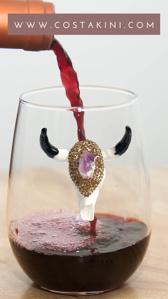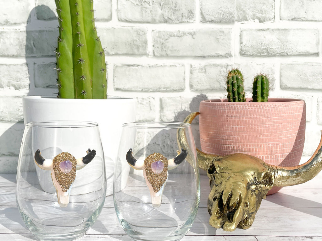 Amethyst and Rose Gold Rhinestones Longhorn Stemless Wine Glass