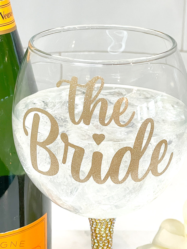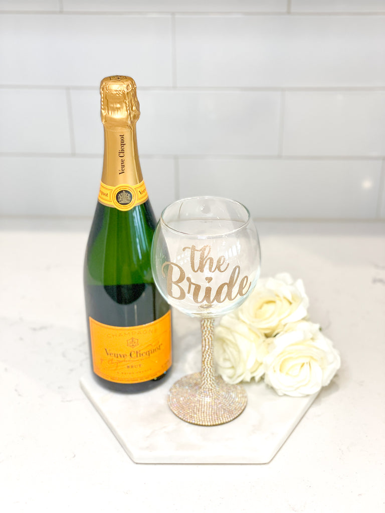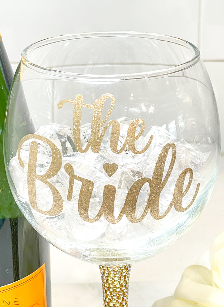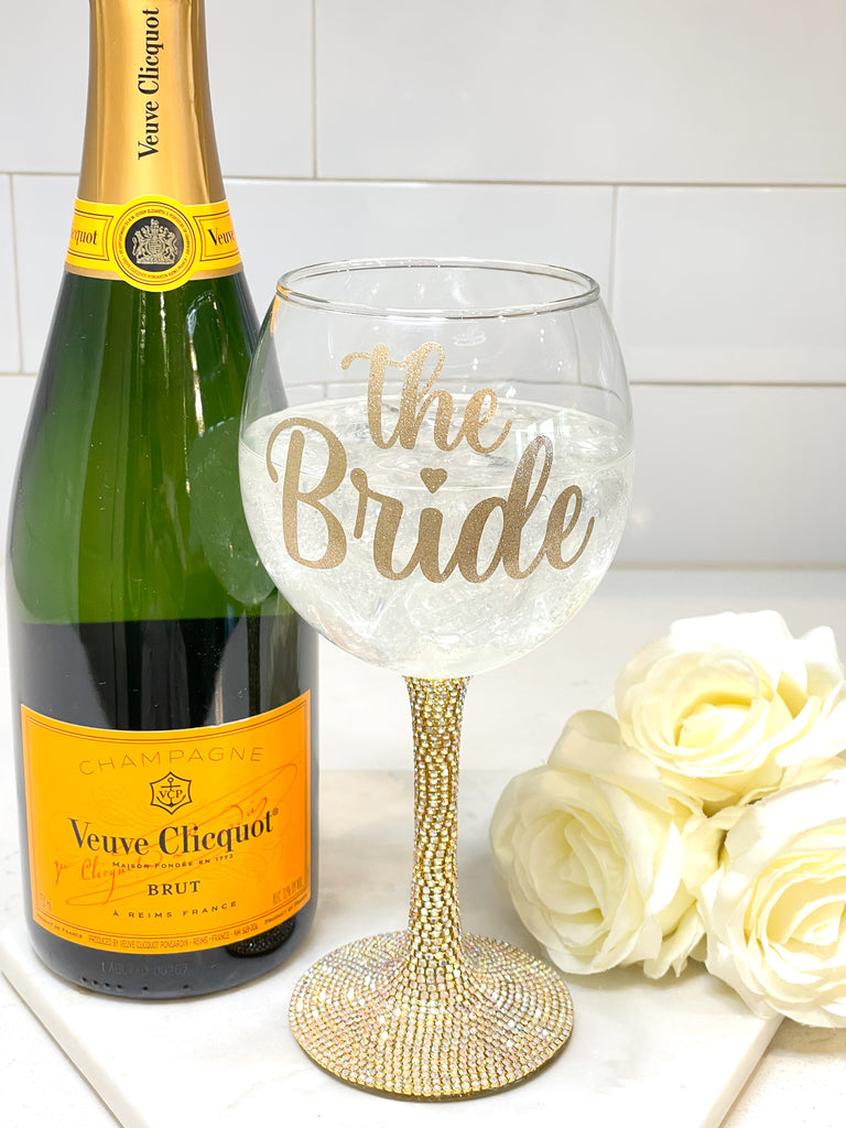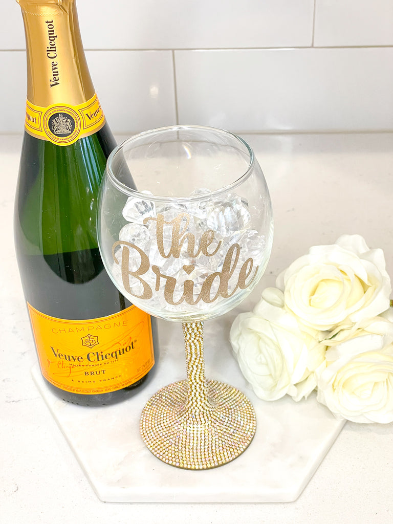 Custom Bride Rhinestone Stem Bowl Wine Glasses - Custom Wine Glass / Mrs Wine Glass / Bride Wine Glass / Gold Wine Glass / Silver Wine Glass / Bling Wine Glass
