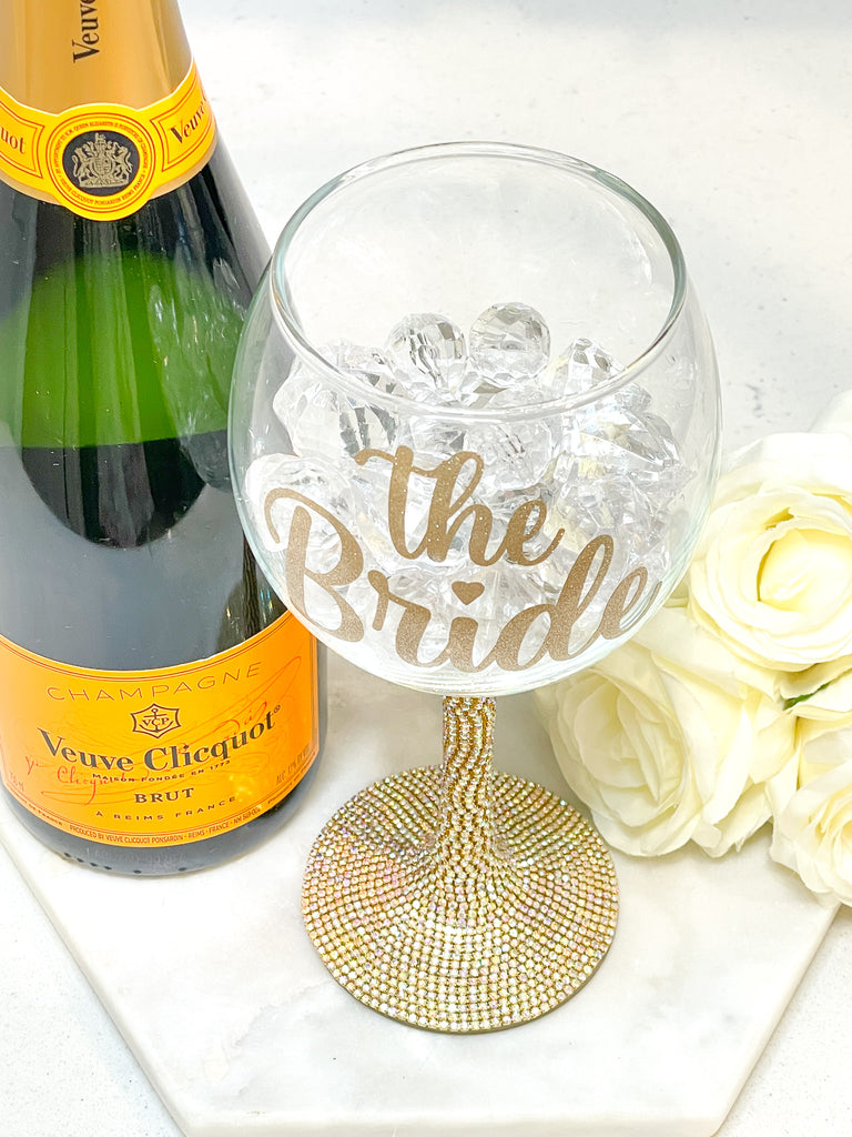 Custom Bride Rhinestone Stem Bowl Wine Glasses