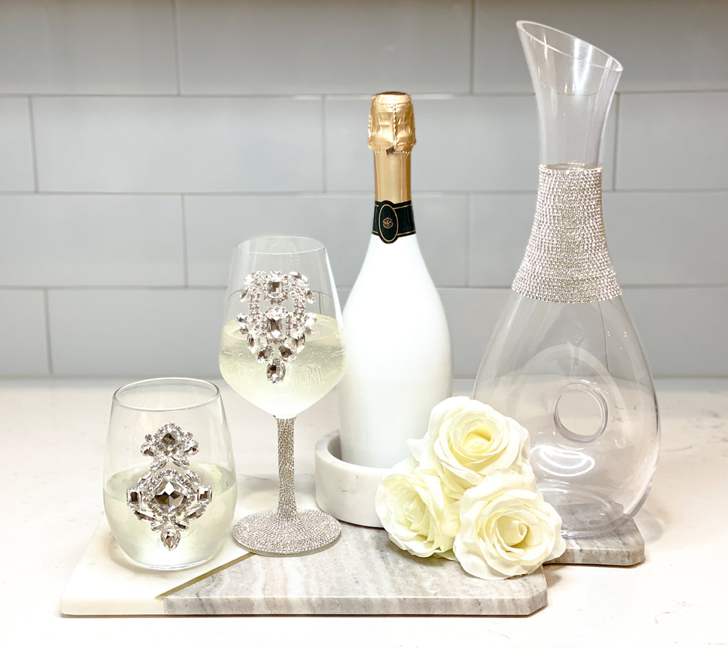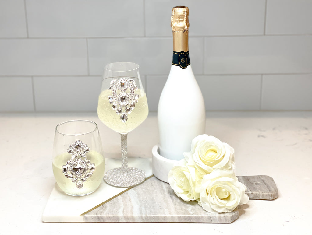 Glam Crystal Rhinestone Wine Glasses - Glam Crystal Wine Glass / Diamond Wine Glass / Gold Wine Glass / Silver Wine Glass / Bling Wine Glass