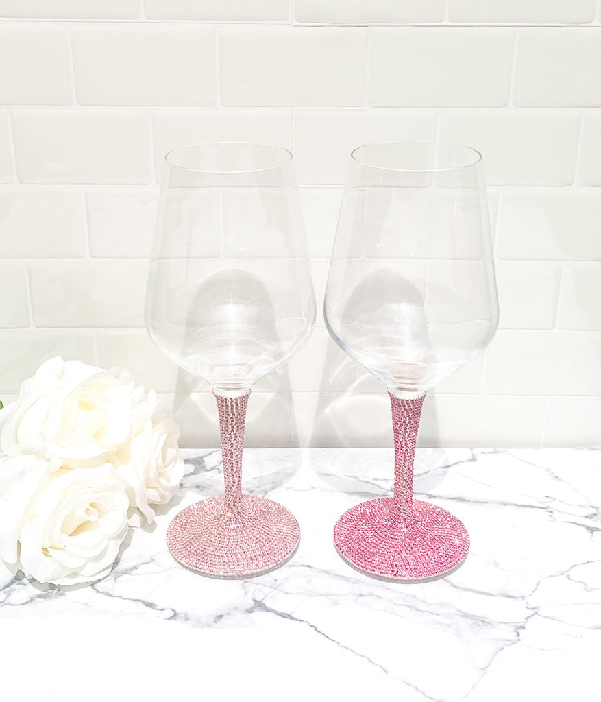 Pink Rhinestone Stem Wine Glasses - Buy More & Save!