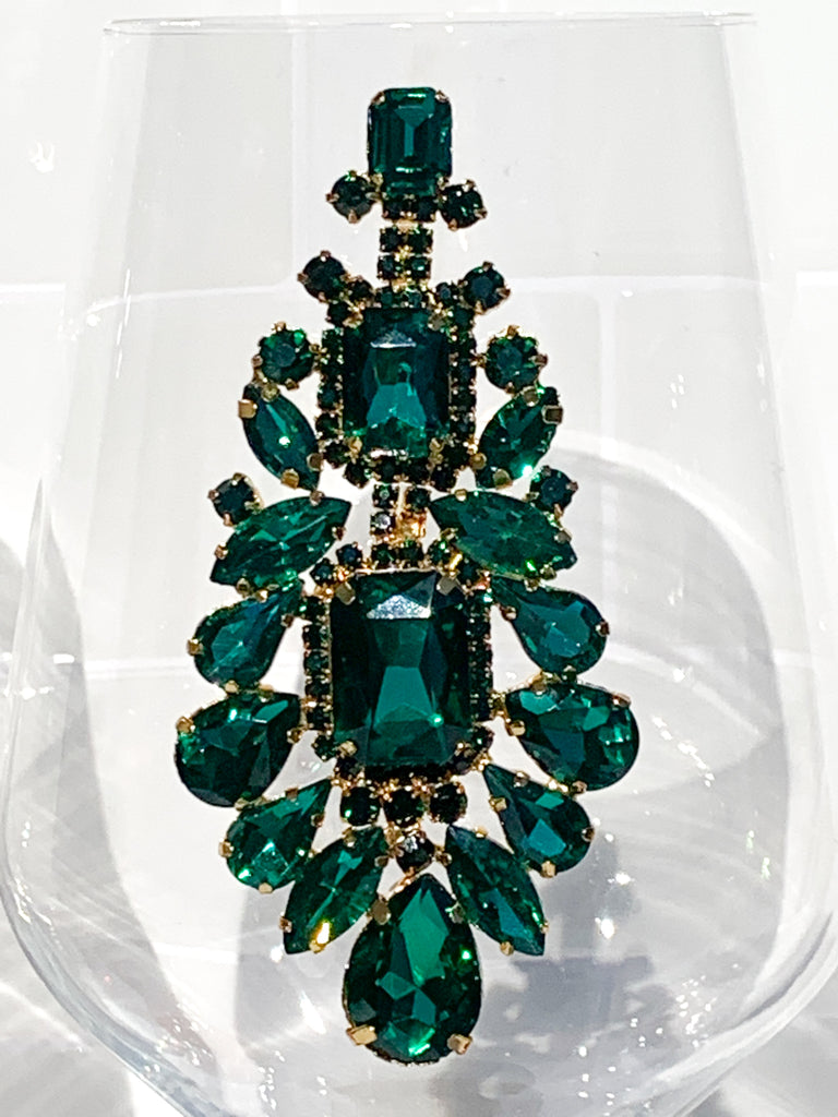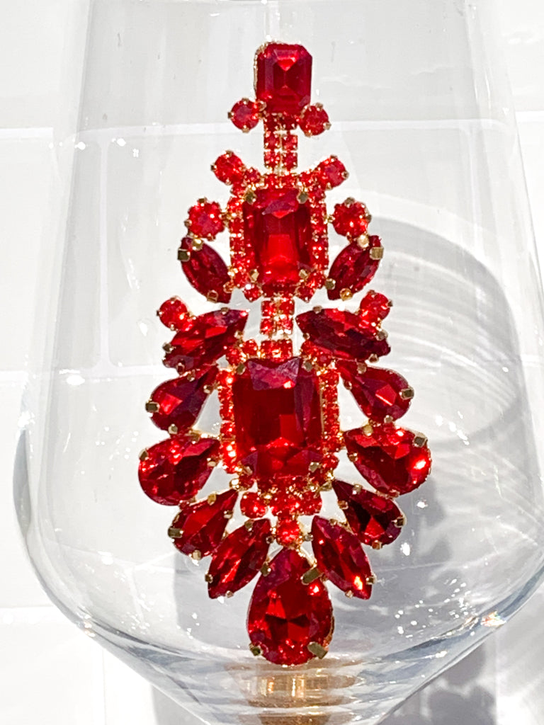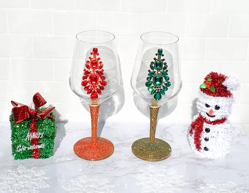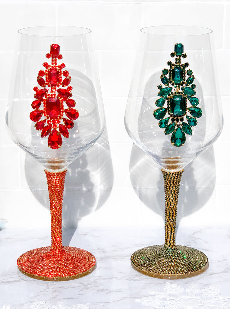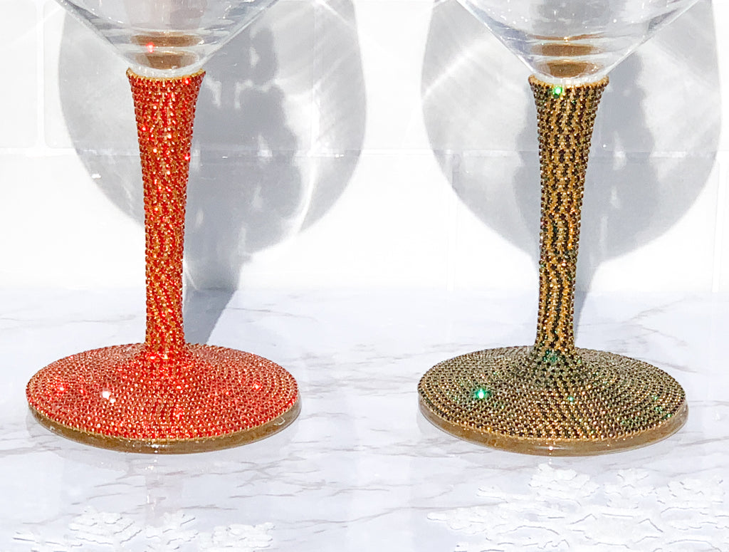 Red & Green Jeweled Rhinestone Christmas Tapered Wine Glasses