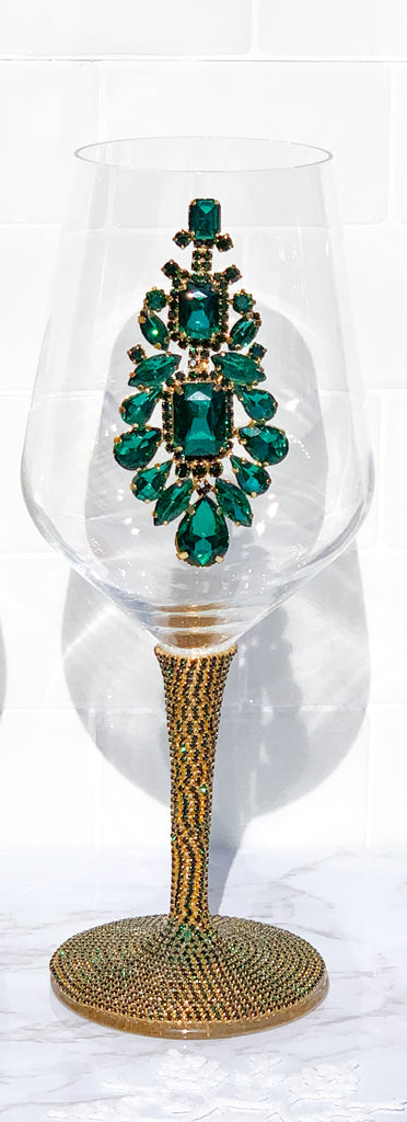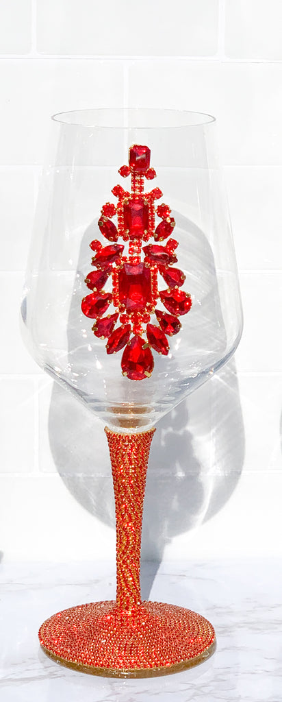 🎄🎁 Red & Green Jeweled Rhinestone Stem Christmas Tapered Wine Glasses 🎁🎄