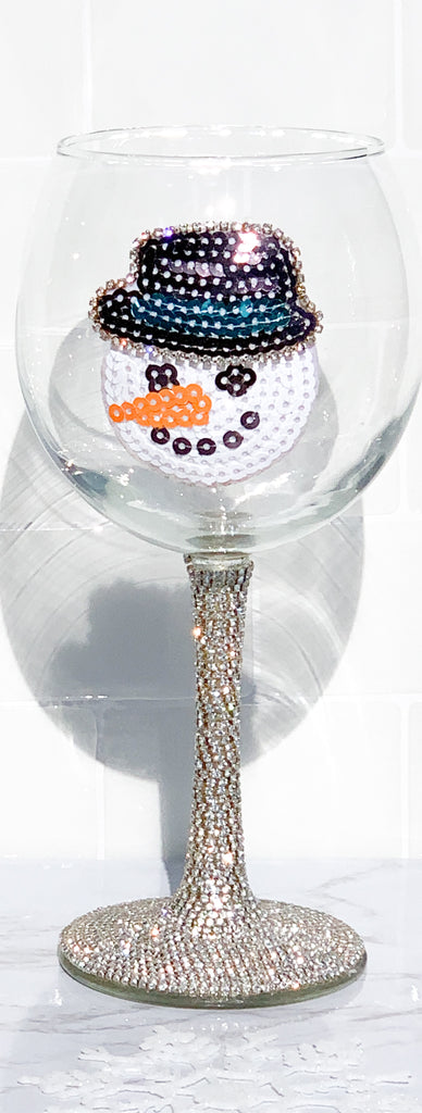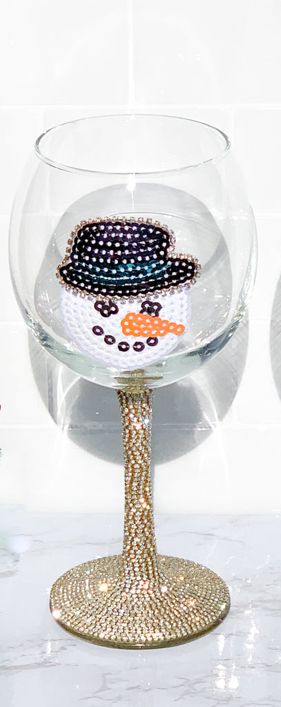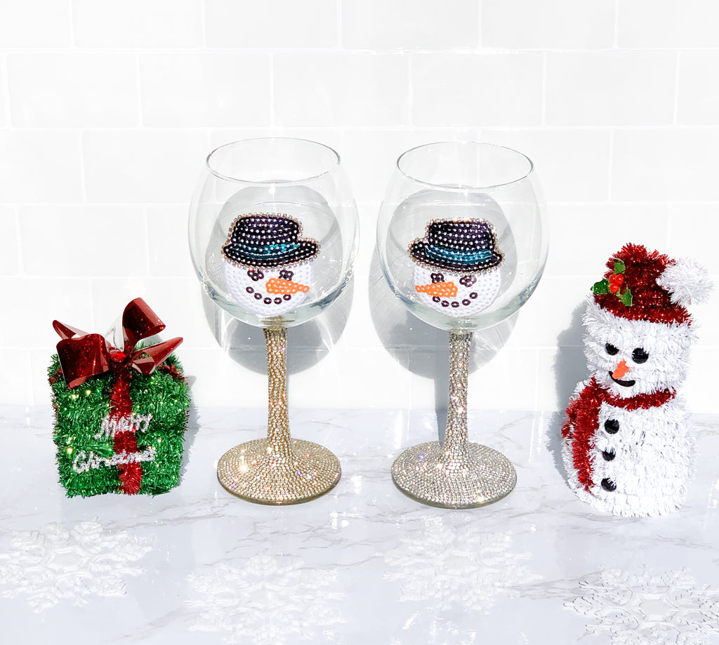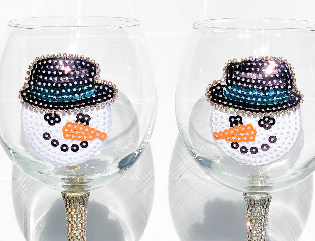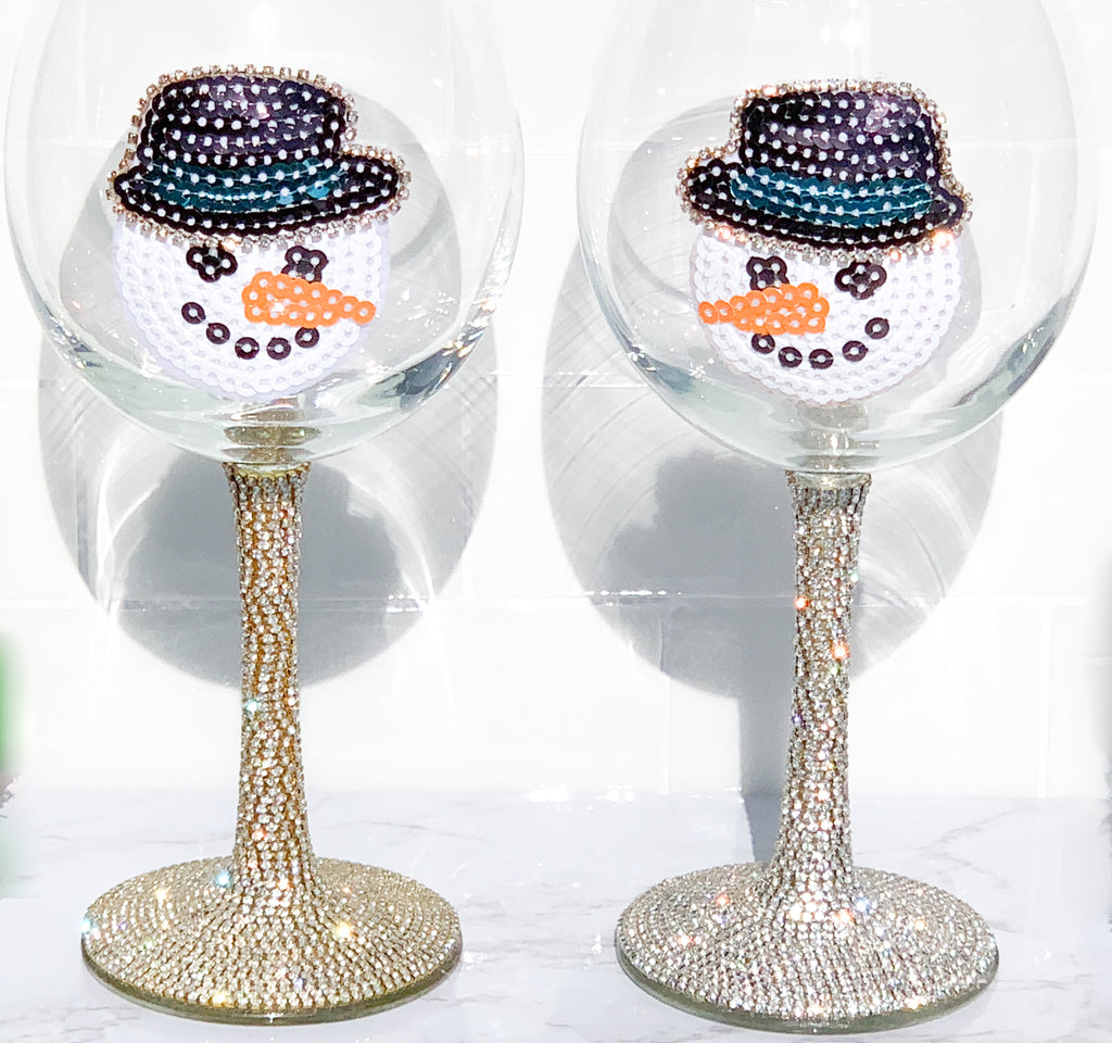 Sequin Snowman Silver & Gold Rhinestone Wine Glasses