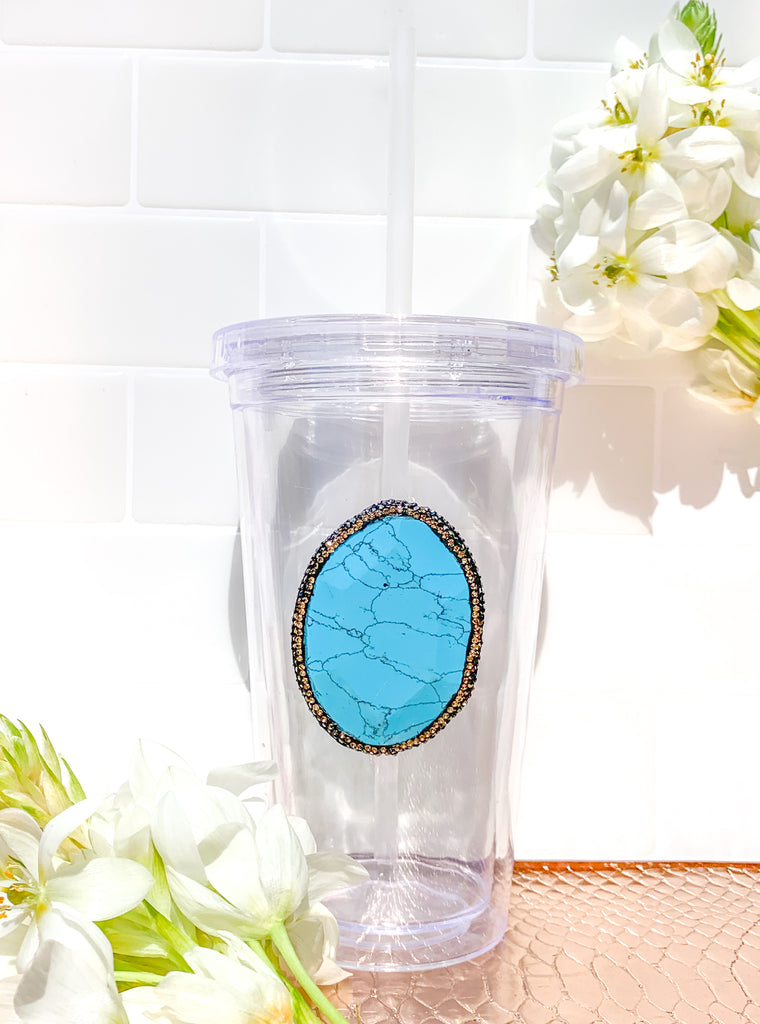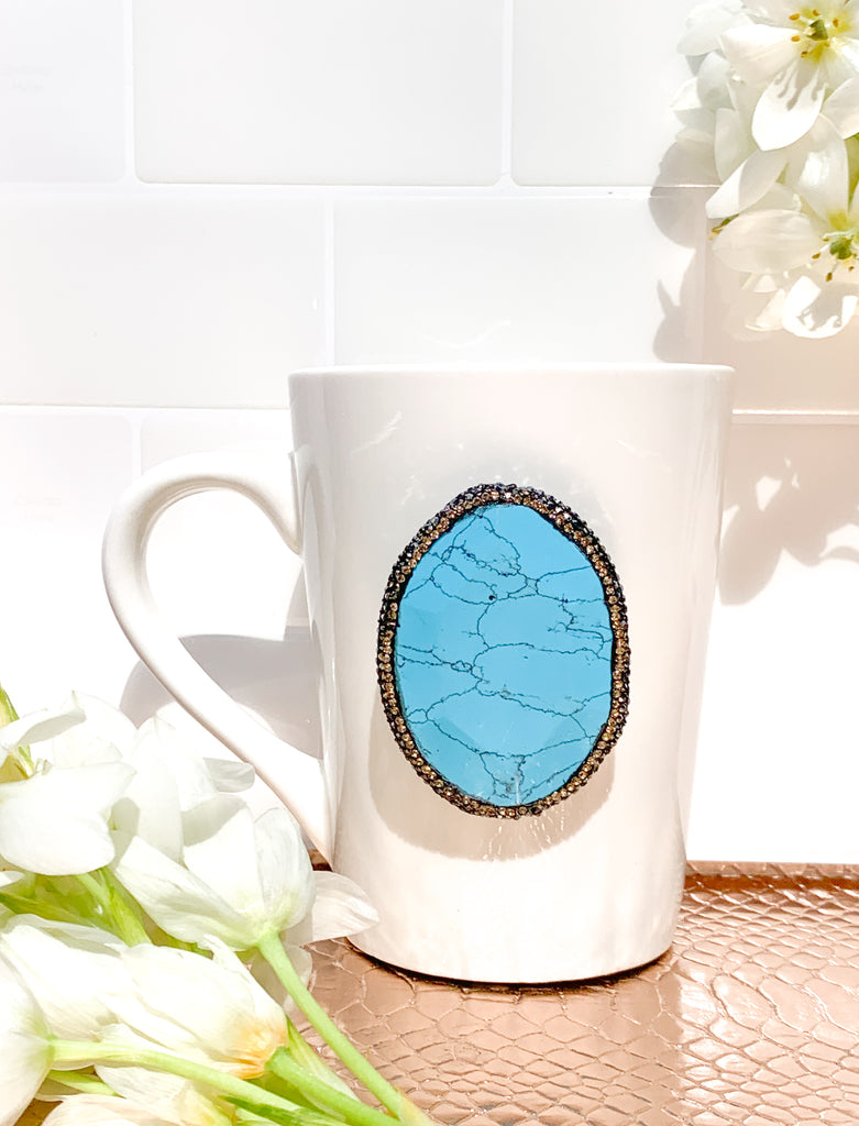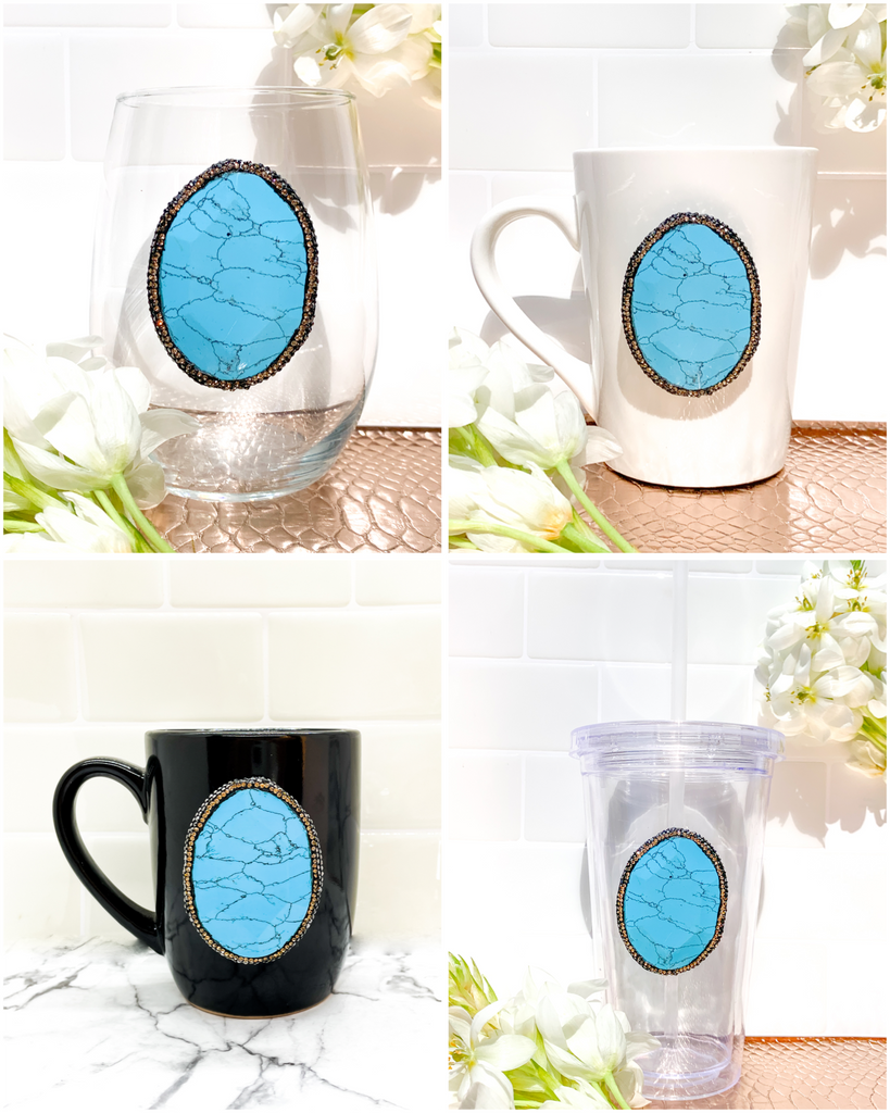 Turquoise Agate with Rhinestones Mug, Wine Glass or Tumbler - Design Your Own Custom Item With Your Stone!