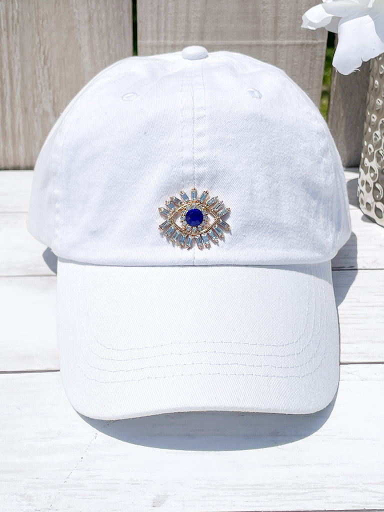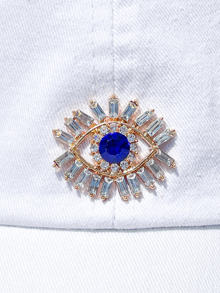 Gold and Rhinestones Blue Evil Eye High Ponytail Hat - White, Black or Pink Hats!