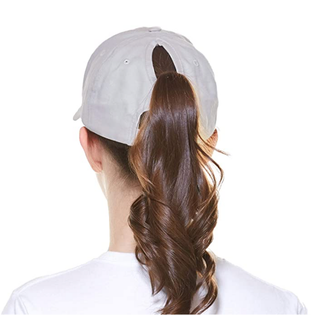 🧢This hat comes with a specially designed hole cut out towards the top of the hat in the back for your ponytail or bun!🧢