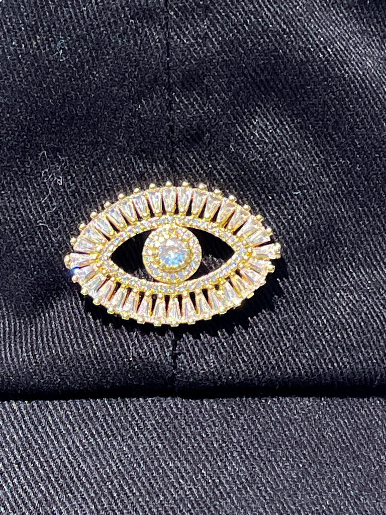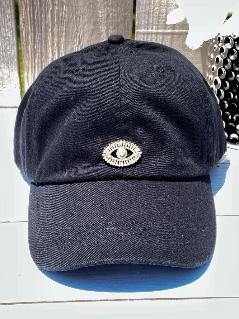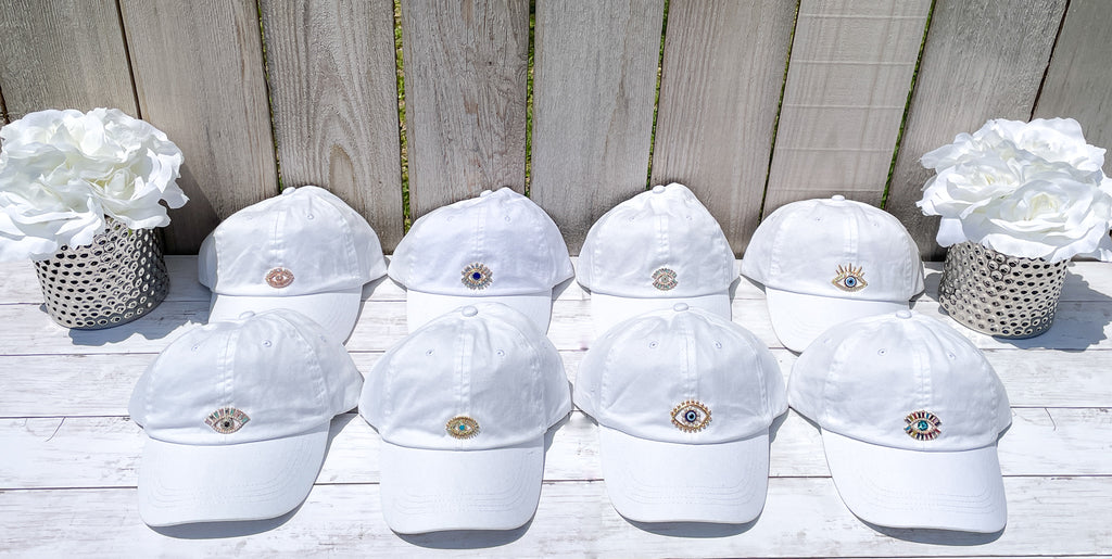 Gold & Rhinestones Evil Eye High Ponytail Hat - White, Black or Pink Hats!