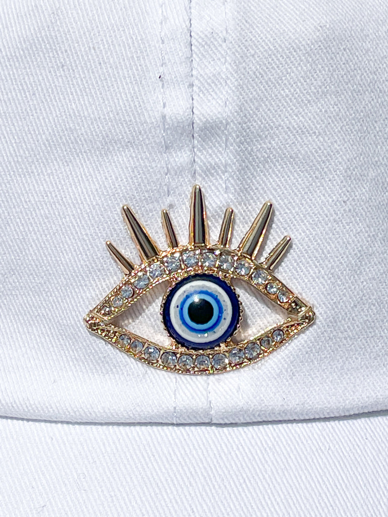 Gold Spiked Blue Evil Eye with Rhinestones High Ponytail Hat - White, Black or Pink Hats!