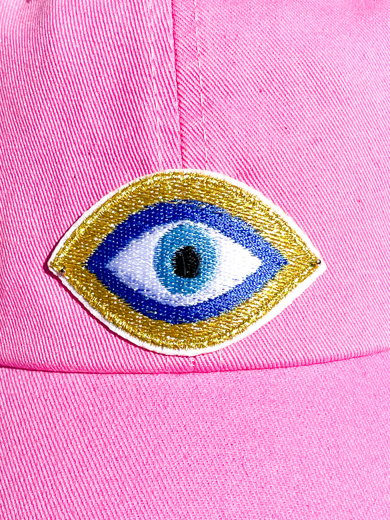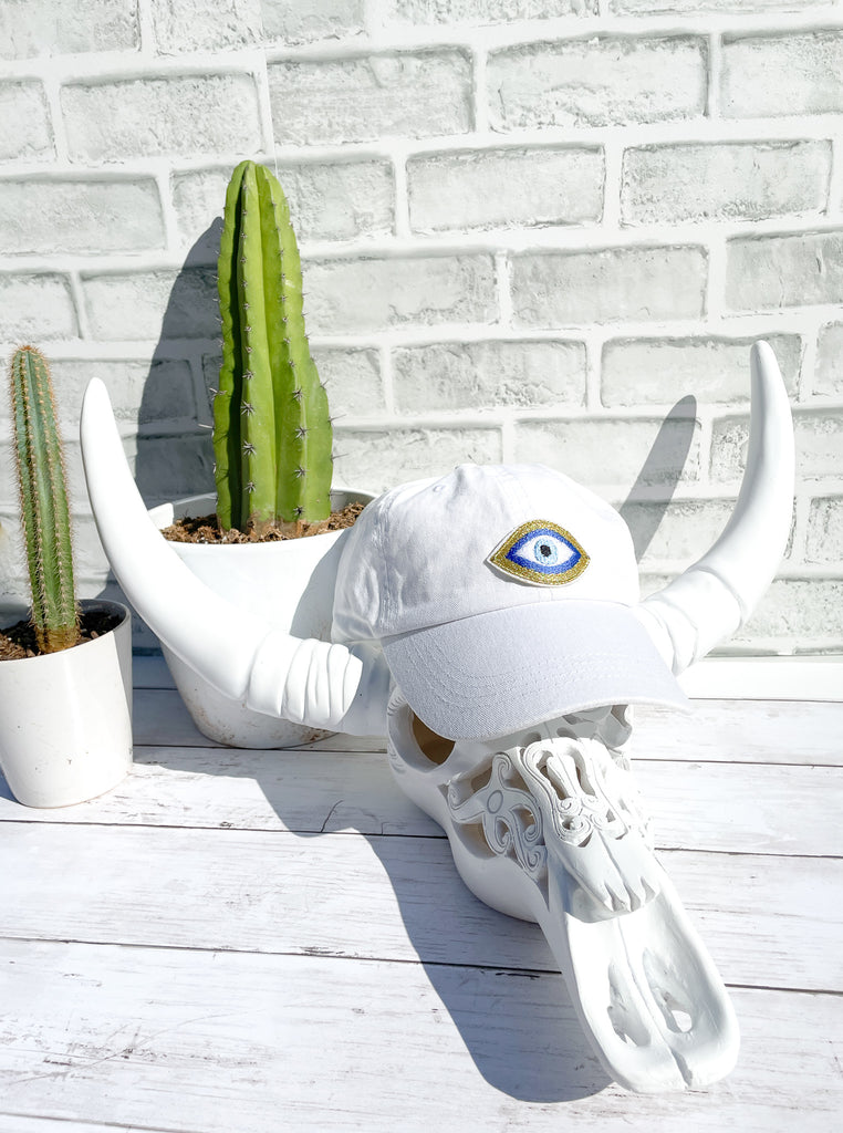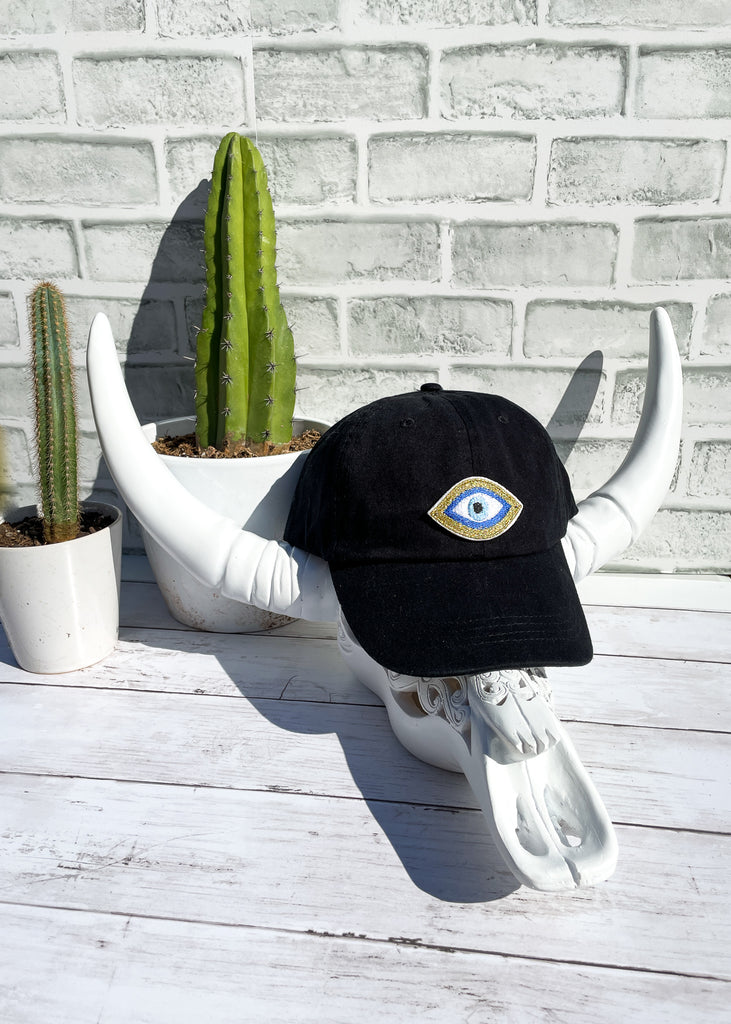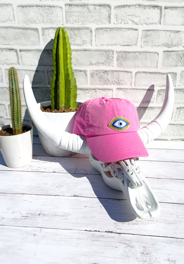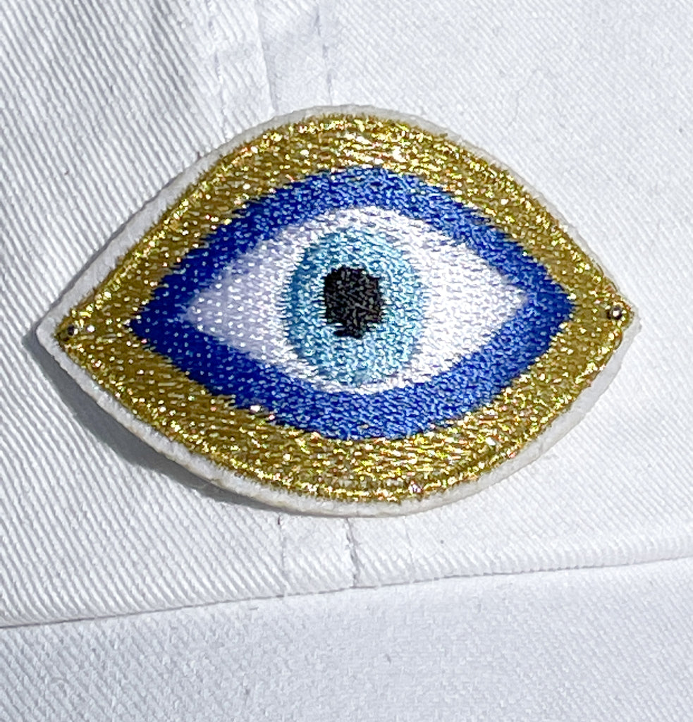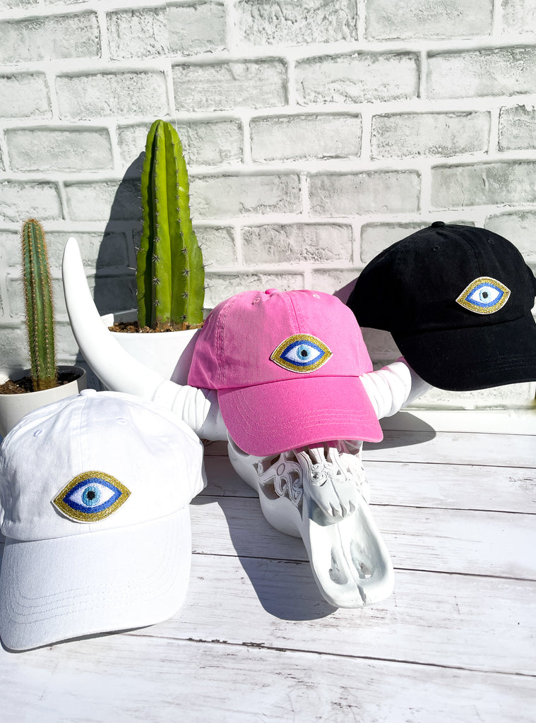 Metallic Gold and Blue Evil Eye High Ponytail Hat - White, Black or Pink Hats!